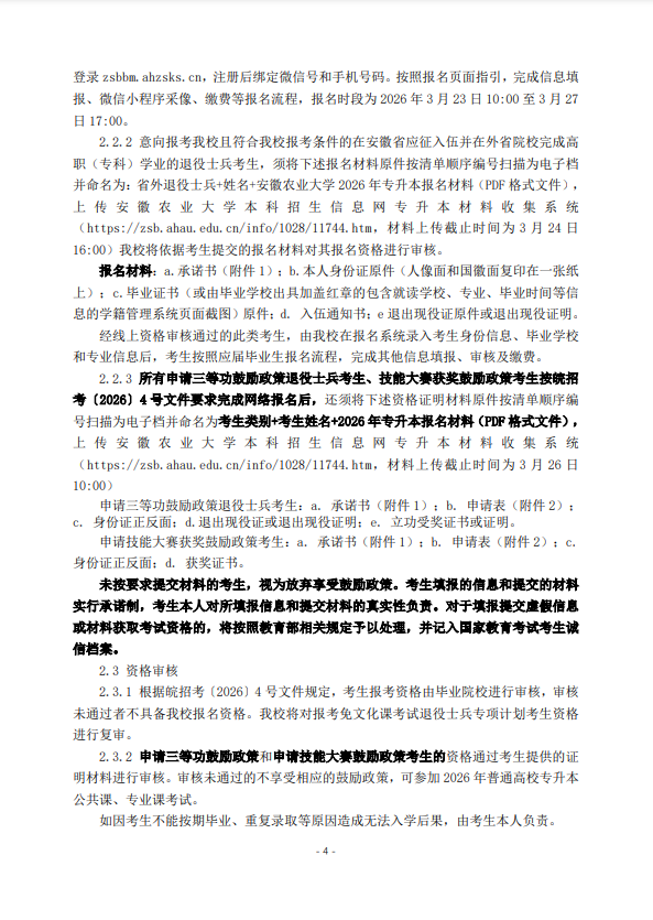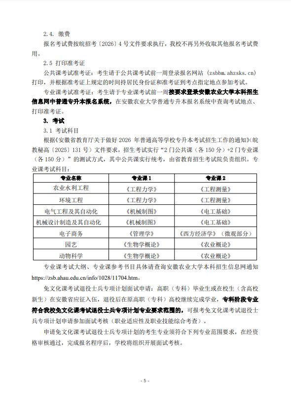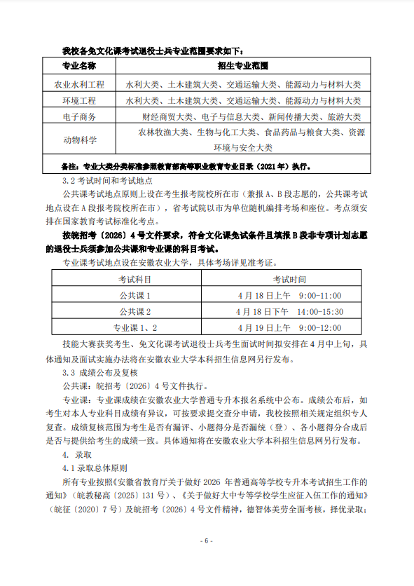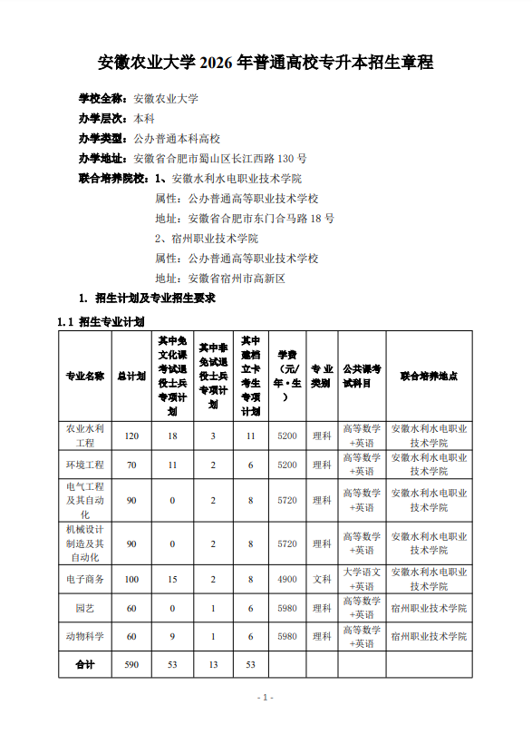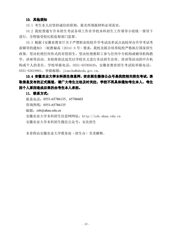 安徽农业大学2026年普通高校专升本招生章程