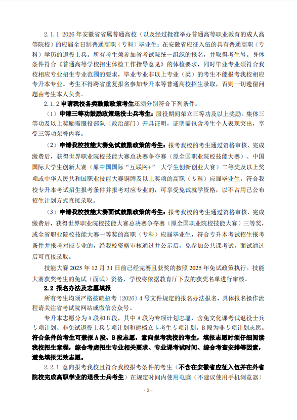 安徽专升本招生简章