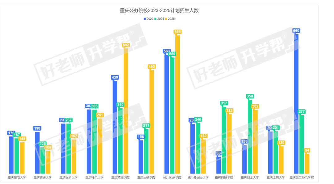 近三年逐年扩招的公办学校是:重庆文理学院、重庆三峡学院、长江师范学院