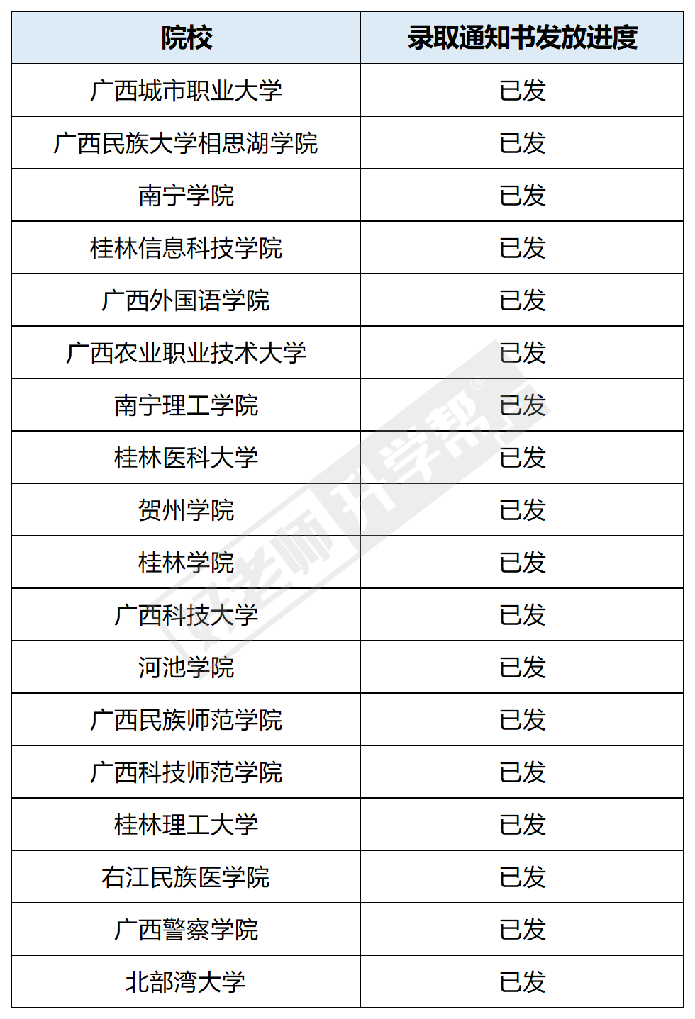目前小编搜到广西已经有18所院校发出录取通知书啦!如果还有其他同学收到了欢迎在评论区指出~