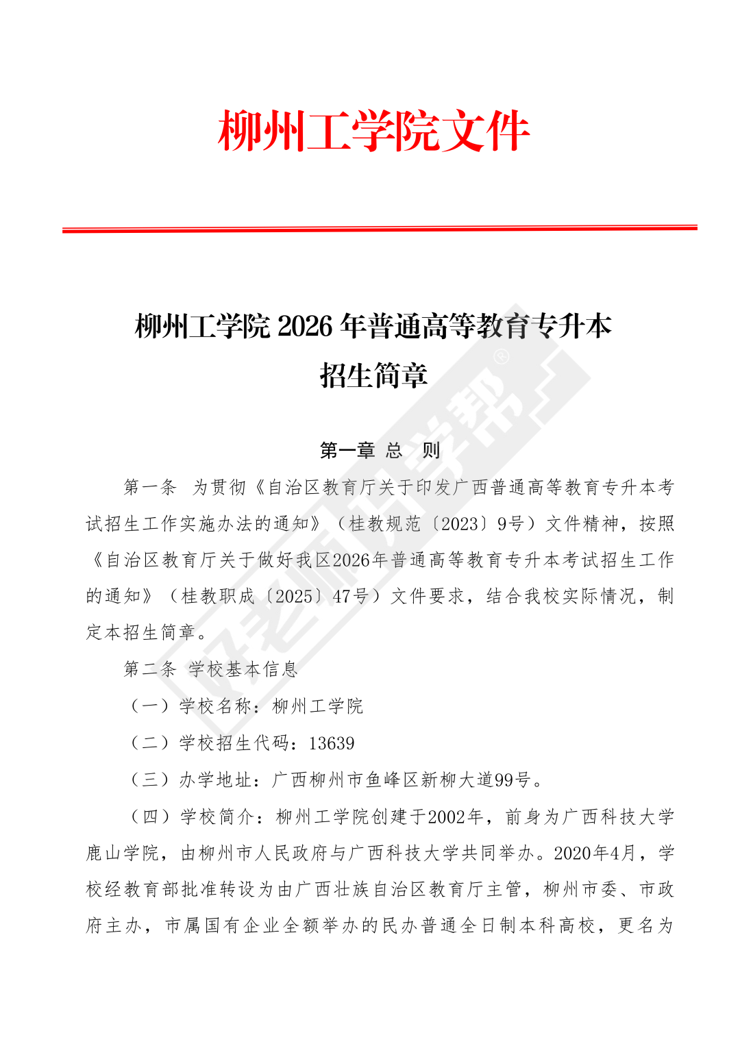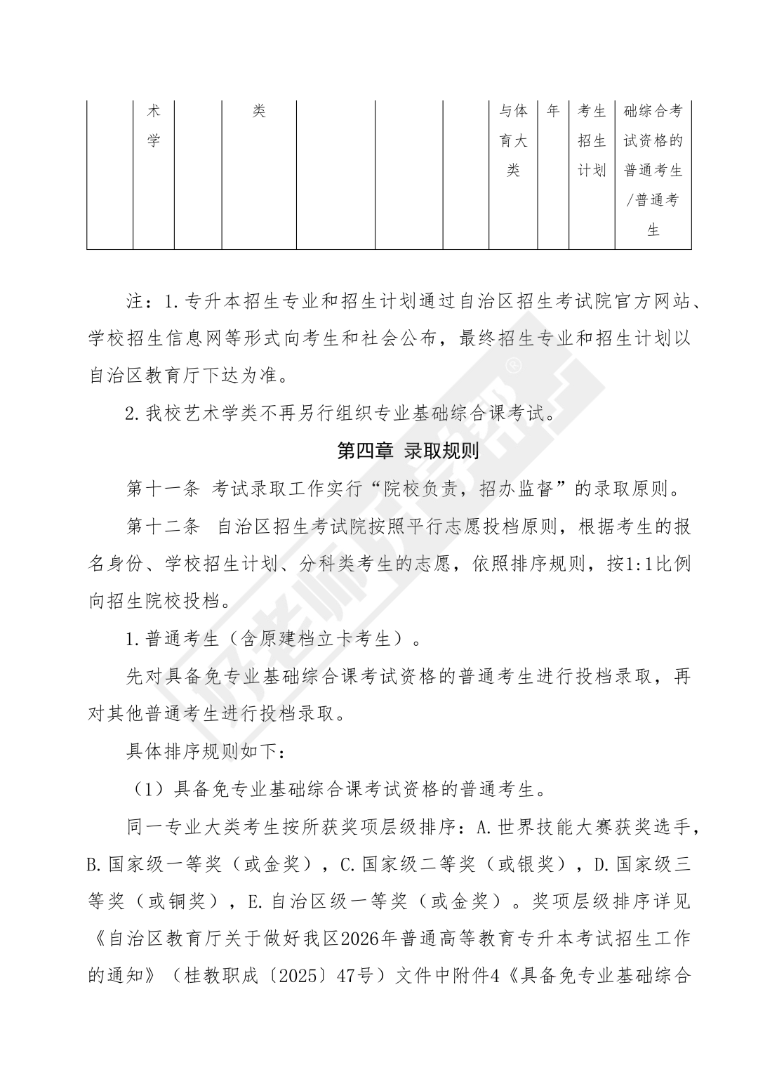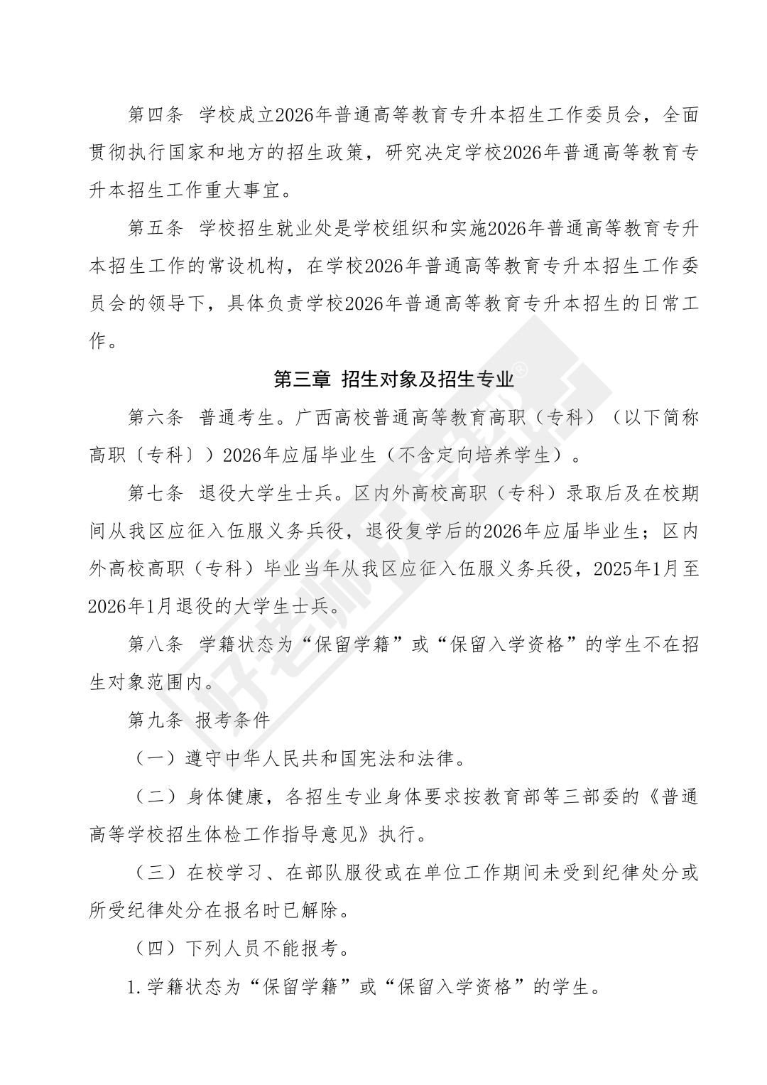 为贯彻<<自治区教育厅关于印发广西普通高等教育专升本考试招生工作实施办法的通知>>(桂教规范(2023)9号)文件精神,按照<<自治区教育厅关于做好我区2026年普通高等教育专升本考试招生工作的通知>>(桂教职成(2025)47号)文件要求,结合我校实际情况,制定本招生简章。