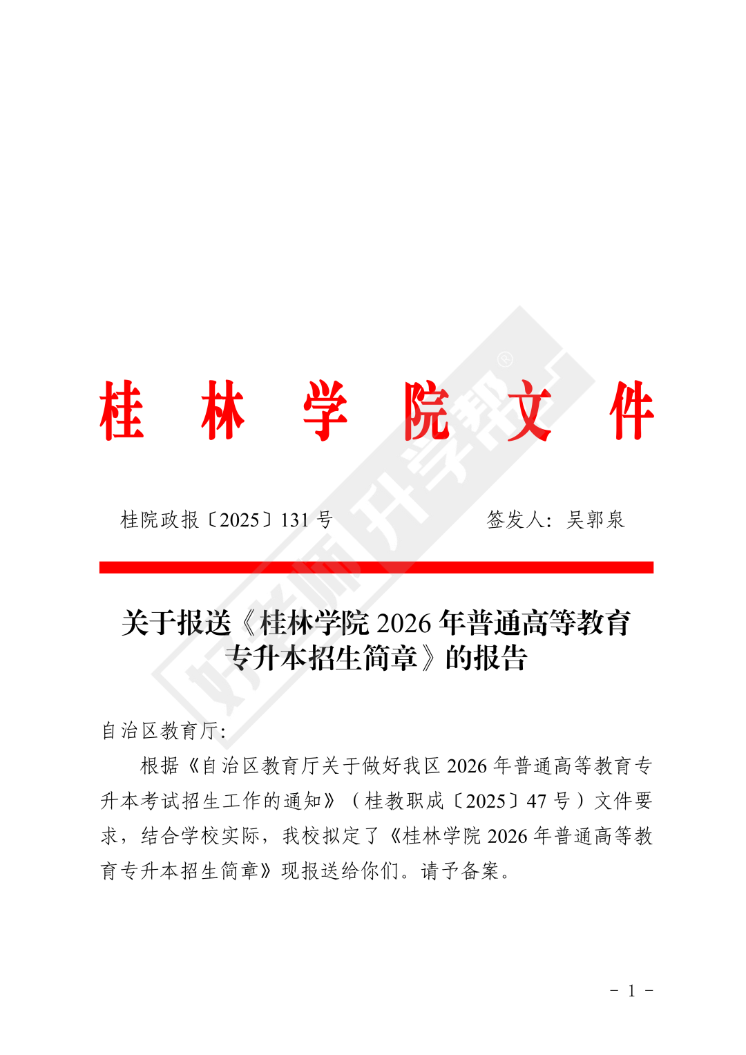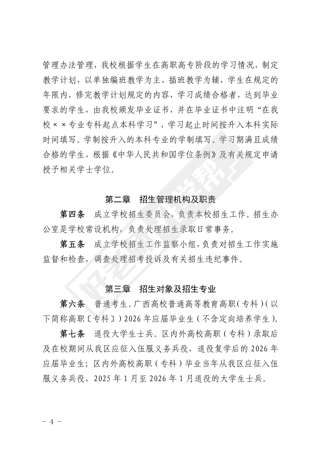 为贯彻<<自治区教育厅关于印发广西普通高等教育专升本考试招生工作实施办法的通知>>(桂教规范[2023]9号)文件精神,按照<<自治区教育厅关于做好我区2026年普通高等教育专升本考试招生工作的通知>>(桂教职成[2025]47号)文件要求,结合我校实际情况,制定本招生简章。