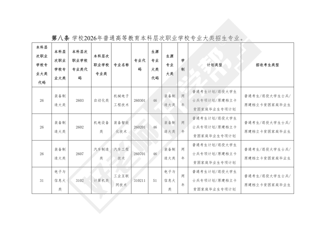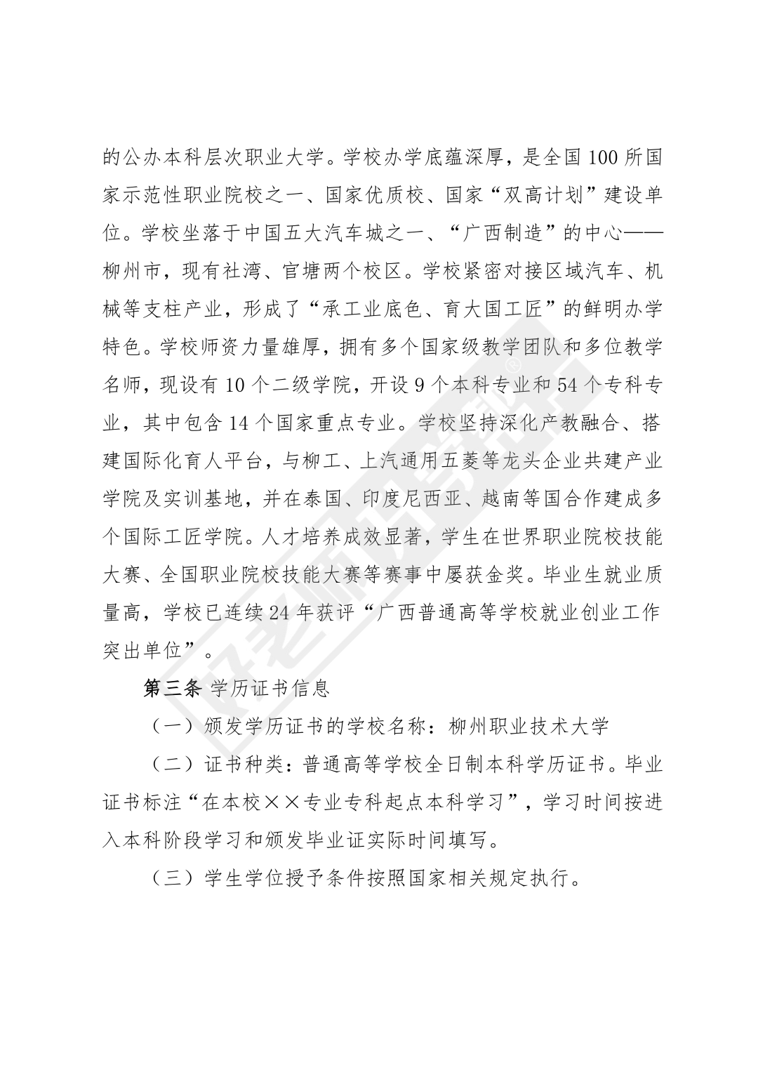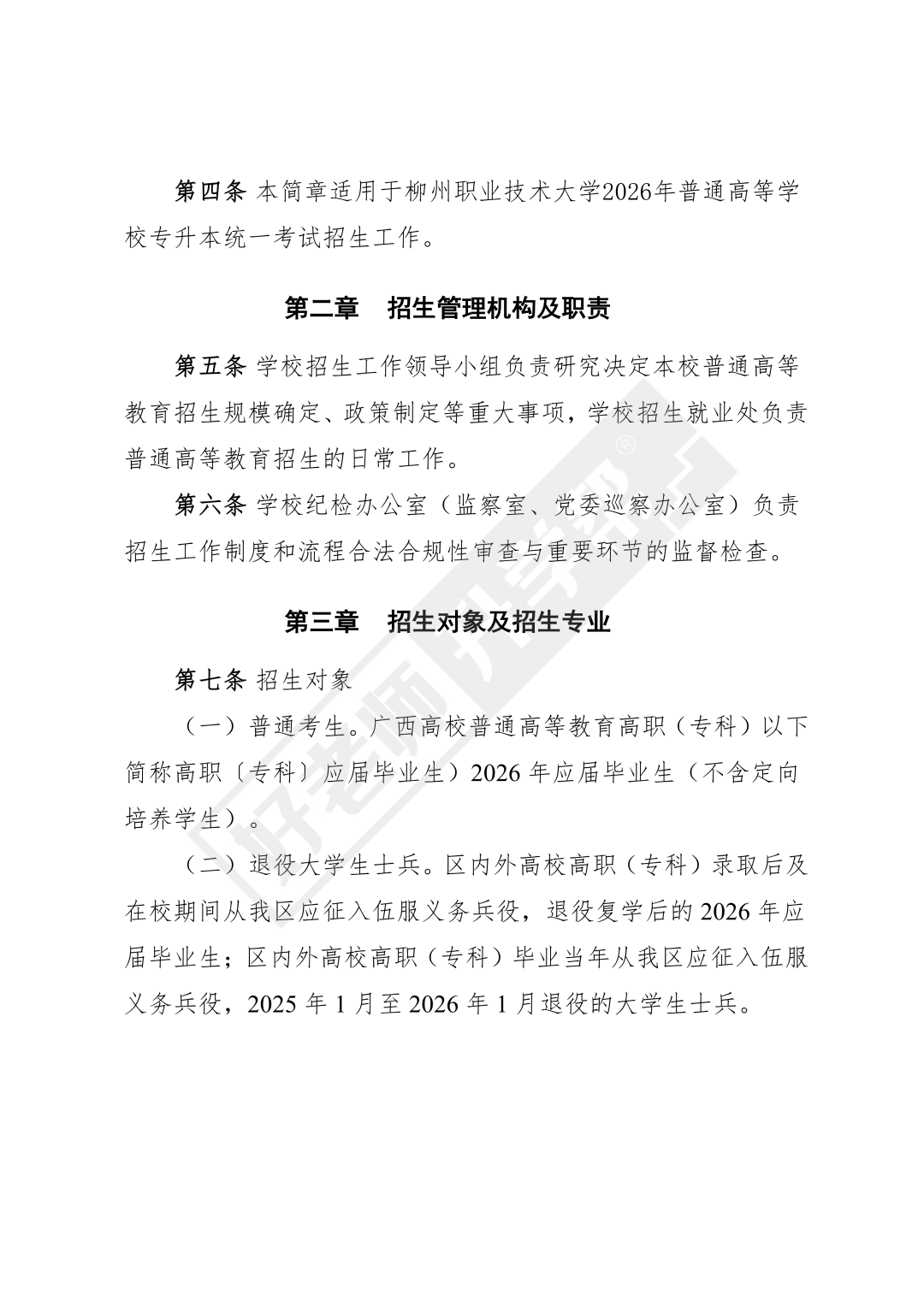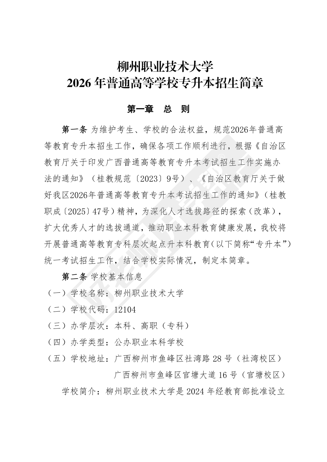 柳州职业技术大学2026年普通高等教育专升本考试招生简章