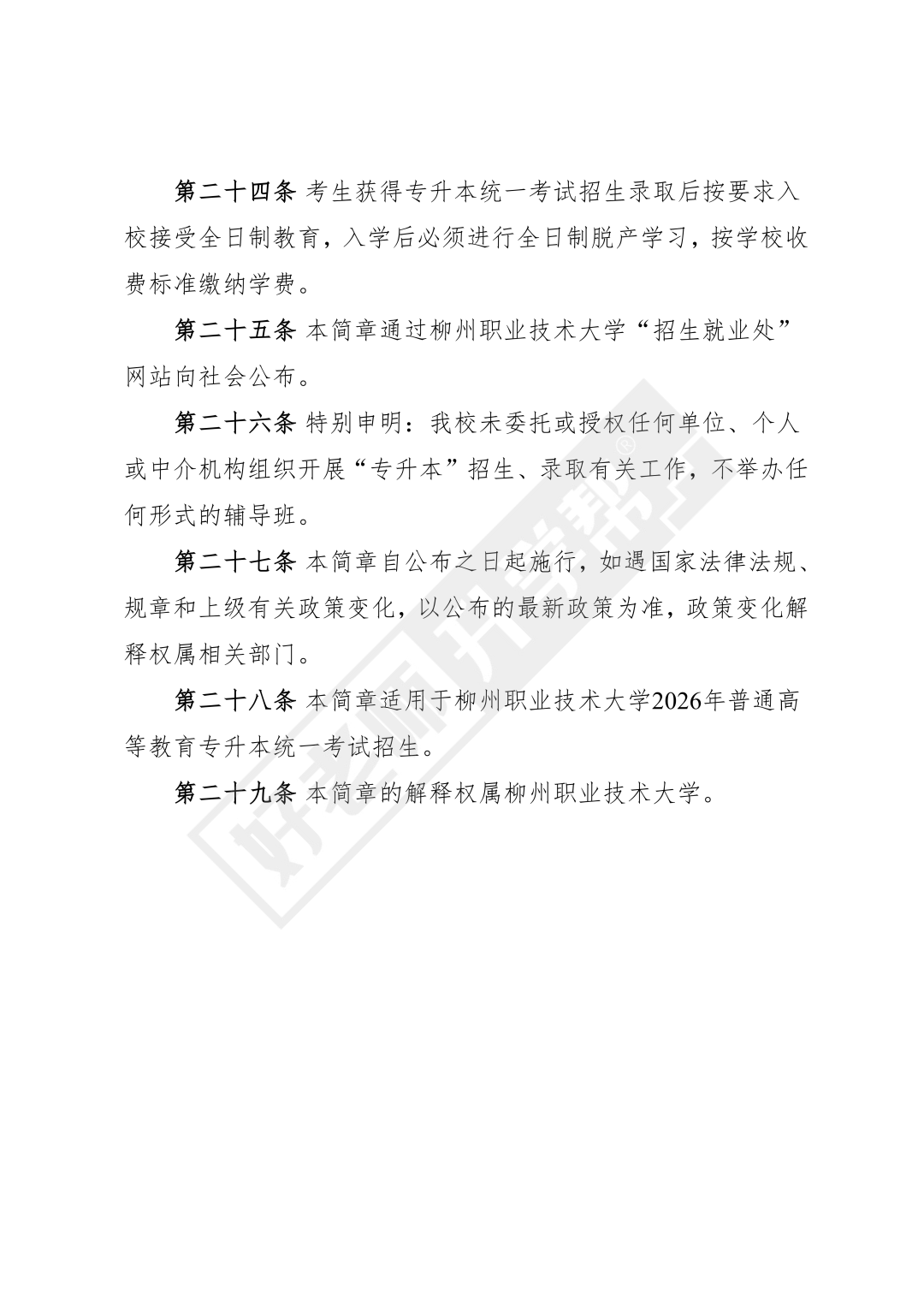 本文是柳州职业技术大学2026年普通高等教育专升本考试招生简章,由好老师升学帮整理给大家参考!