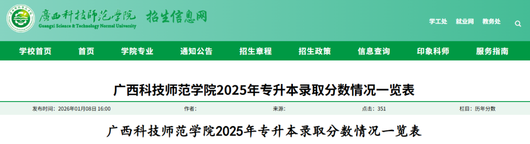 本文是广西科技师范学院2025年专升本录取分数情况一览表,由好老师升学帮整理给大家参考!
