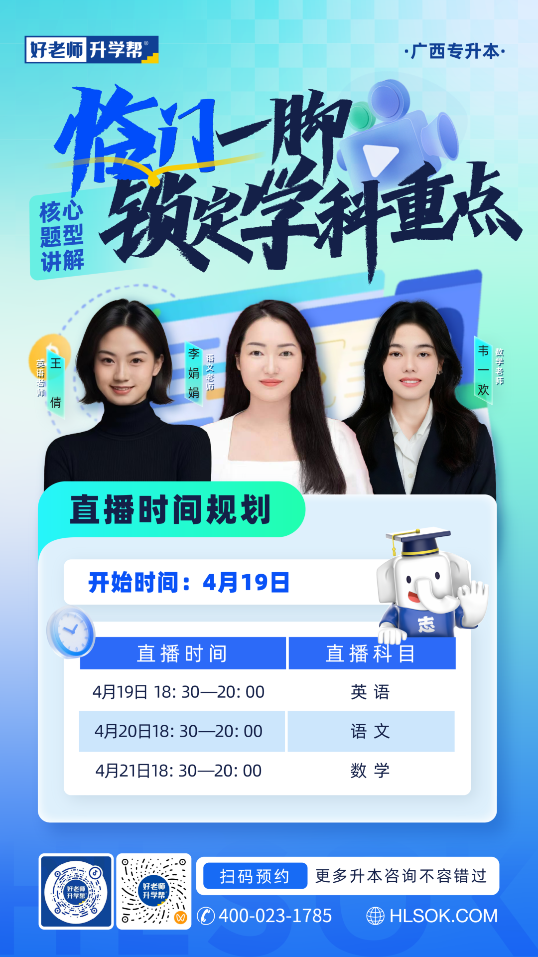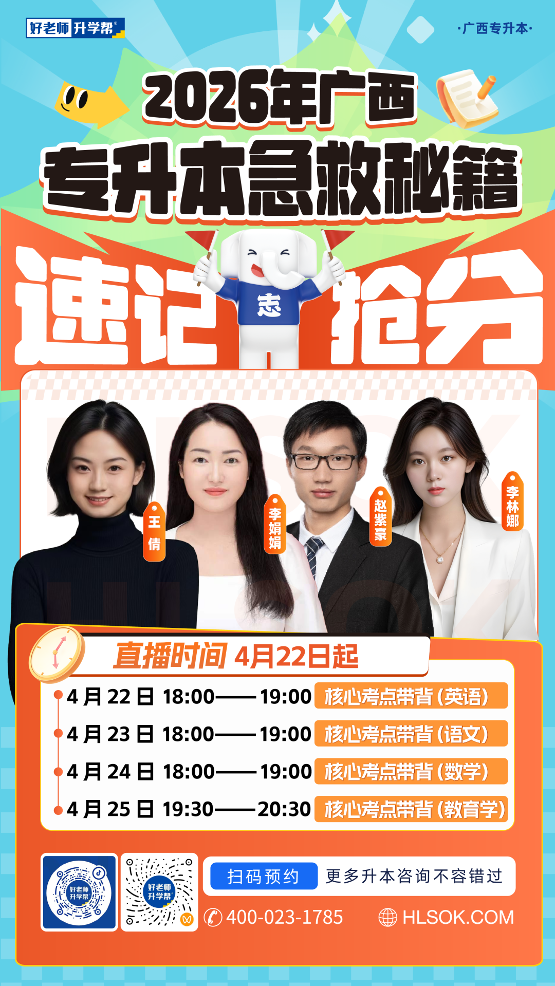 关注我们,锁定直播时间,让我们陪你并肩冲刺,顺利抵达理想的彼岸!2026,广西专升本考生,我们岸上见!