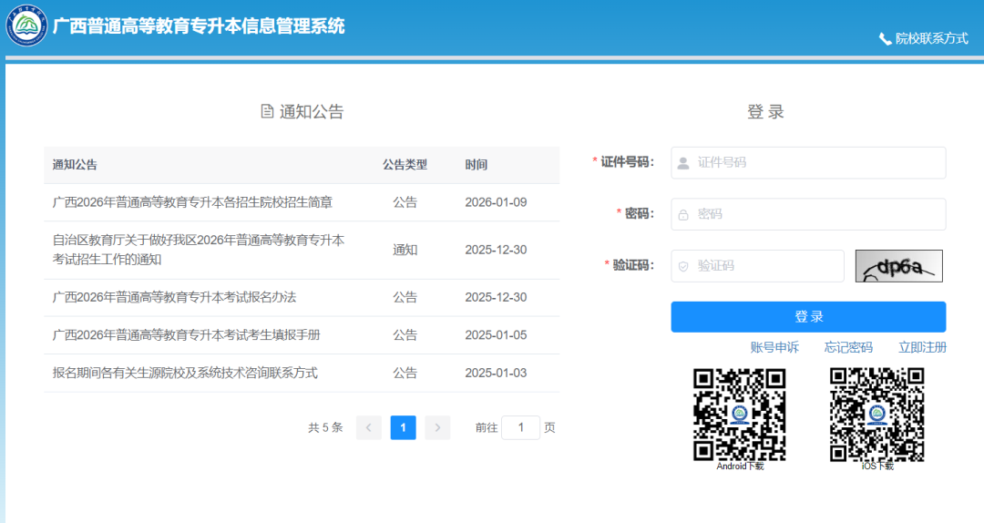 01 准考证打印时间与入口 1、打印时间:2026年4月20日12:00至4月26日11:30。 2、打印入口: 电脑端: 登录“广西招生考试院”官网(https://www.gxeea.cn),点击“系统导航→考试报名→广西普通高等教育专升本信息管理系统”进入。 手机端:考生使用手机扫描网上报名系统登录页面的“广西专升本”App二维码,下载安装“广西专升本”App(考生请根据实际情况扫描Android或IOS二维码),点击网上报名系统进行注册报名。 02 打印步骤详解 Step 1:登录系统 使用电脑或手机进入指定入口,输入注册时的账号(身份证号/手机号)及密码登录。 注意:若忘记密码,可通过绑定的手机号或邮箱找回。 Step 2:核对信息 登录后点击“准考证打印”,仔细核对姓名、身份证号、报考专业、考试科目、考场地址及时间等关键信息。 特别提醒:旅游大类、教育与体育大类、公安与司法大类的考生需确认所选考试科目是否符合招生院校要求。 Step 3:下载与打印 确认信息无误后,点击“下载准考证”,保存PDF文件至本地。 使用A4纸单面打印,黑白或彩色均可,但需确保照片、文字清晰可辨。 03 注意事项与常见问题 1、信息核对:若发现准考证信息有误(如姓名、照片、考试科目等),需立即联系报名点院校或广西招生考试院(电话:0771-5320540)处理。 2、禁止涂改:准考证正反面不得有任何书写或涂改痕迹,否则视为无效。 3、证件要求:考试当天需携带纸质准考证+有效身份证原件(临时身份证需加盖派出所公章)。 4、打印备份:建议打印至少2份准考证,电子版保存至手机或云端,防止丢失。 5、考场踩点:提前查看考场位置,建议考试前一天实地踩点,避免因路线不熟迟到。 6、特殊考生提醒: ·退役大学生士兵:需确保已通过退役军人事务部门的信息审核,并携带相关服役证明原件。 ·免试考生:核对免试资格标注是否准确,如获奖证书信息是否匹配 04 常见问题解答 Q1:手机端可以打印准考证吗? 支持通过“广西专升本”App下载准考证文件,但打印需连接打印机或传输至电脑操作。 Q2:打印时网页卡顿或无法登录怎么办? 避开高峰期,使用谷歌、火狐等兼容性强的浏览器。 Q3:缴费票据如何领取? 报名费及考试费电子票据可在打印准考证期间通过系统申请,逾期不再补发