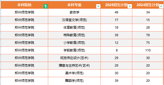 2024-2025年郑州师范学院专升本招生计划增减情况