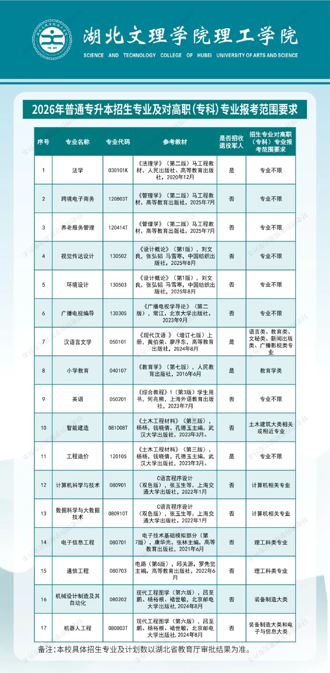 湖北文理学院理工学院2026年专升本招生简章来咯,对比2025年