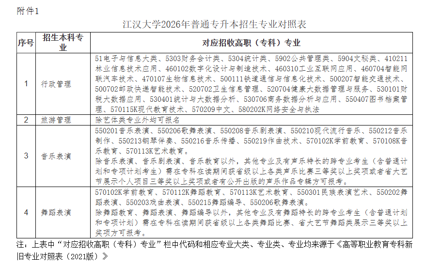 根据《省教育厅关于做好2026年湖北省普通高等学校专升本工作的通知》(鄂教高函〔2026〕2号)文件精神,特制定江汉大学2026年普通专升本招生简章。