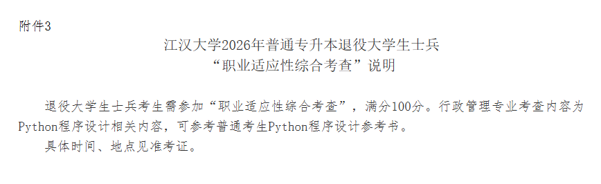 3.江汉大学2026年普通专升本退役大学生士兵“职业适应性综合考查”说明