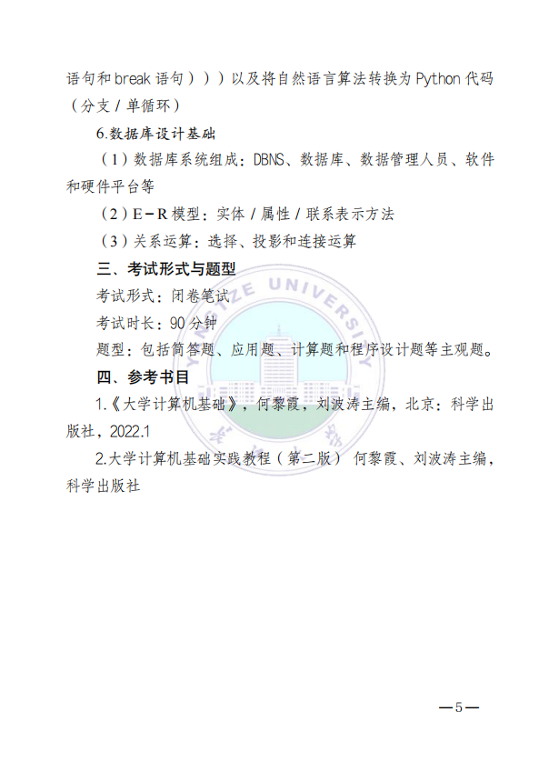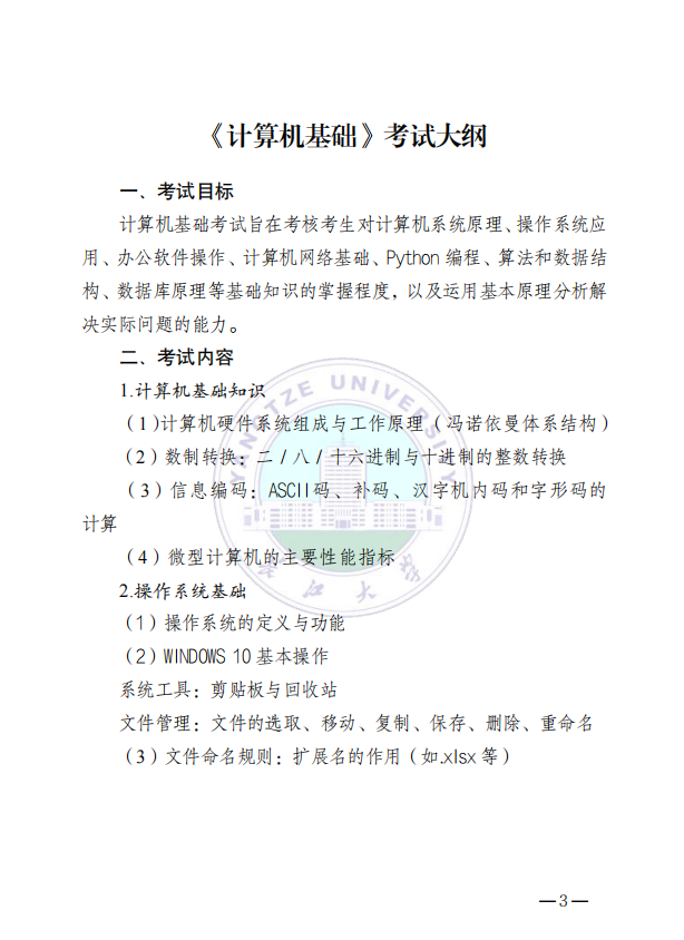 计算机基础考试旨在考核考生对计算机系统原理、操作系统应用、办公软件操作、计算机网络基础、Python编程、算法和数据结构、数据库原理等基础知识的掌握程度,以及运用基本原理分析解决实际问题的能力。
