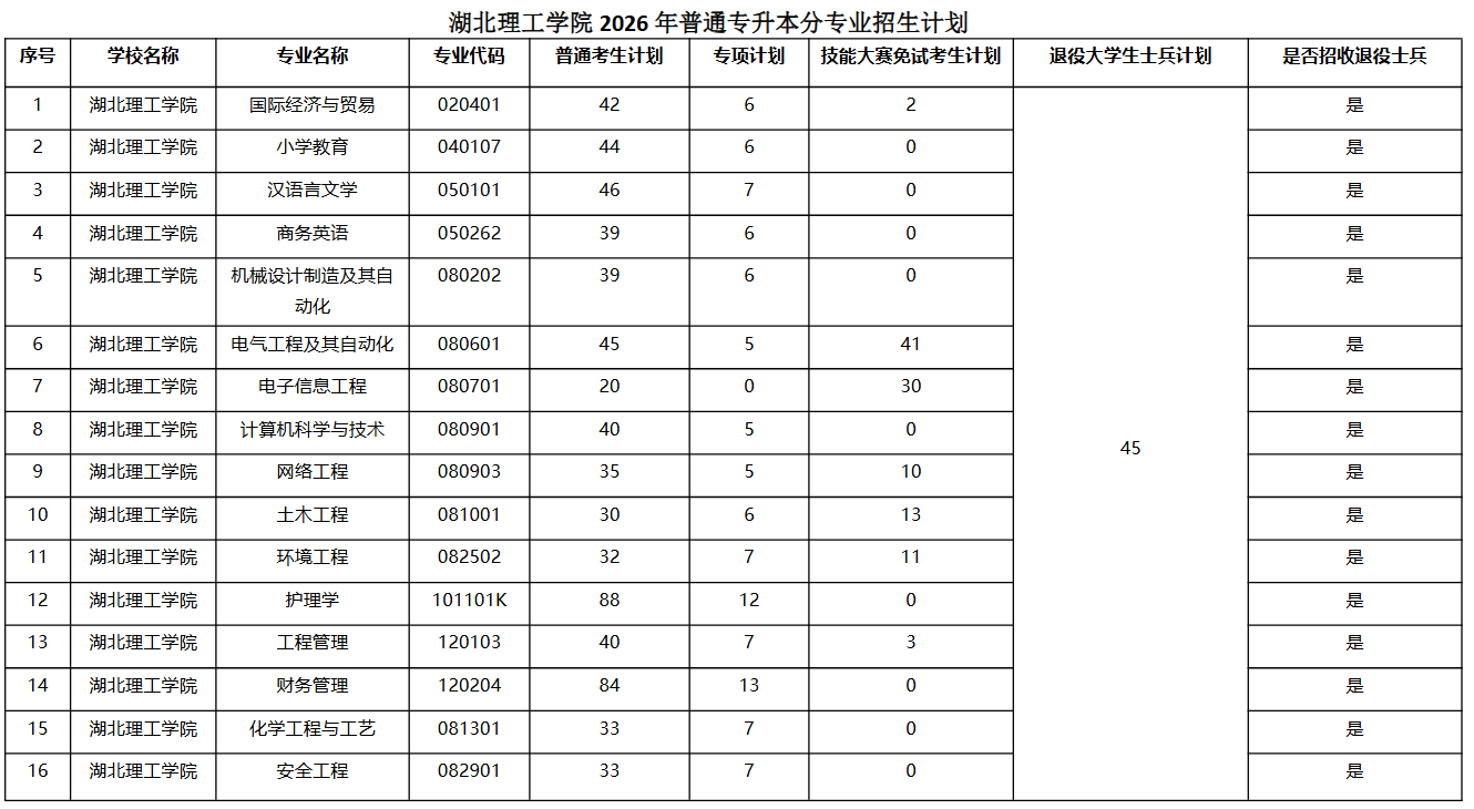 导读:本文是湖北理工学院2026年普通专升本分专业招生计划,由好老师升学帮整理给大家参考!