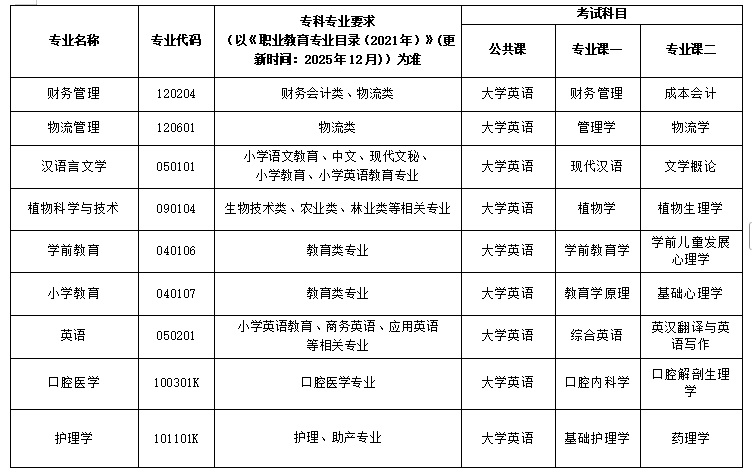 湖北第二师范学院2026年专升本招生专业对高职(专科)专业的报考范围要求