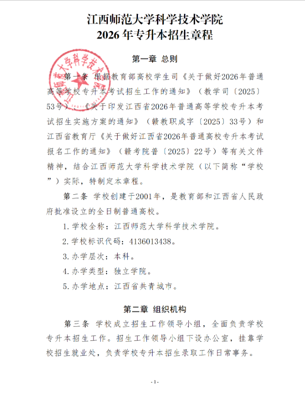 本文是2026年江西师范大学科学技术学院专升本招生简章,由好老师升学帮收集整理,仅供参考。
