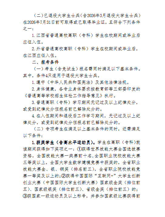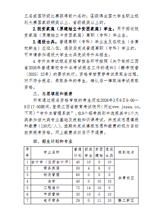 江西财经大学2025年专升本退役大学生士兵免试招生工作简章
