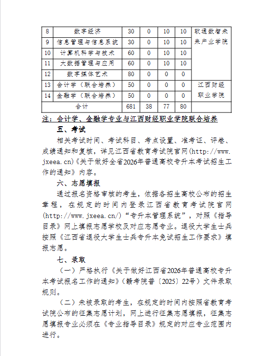江西财经大学2025年专升本招生简章