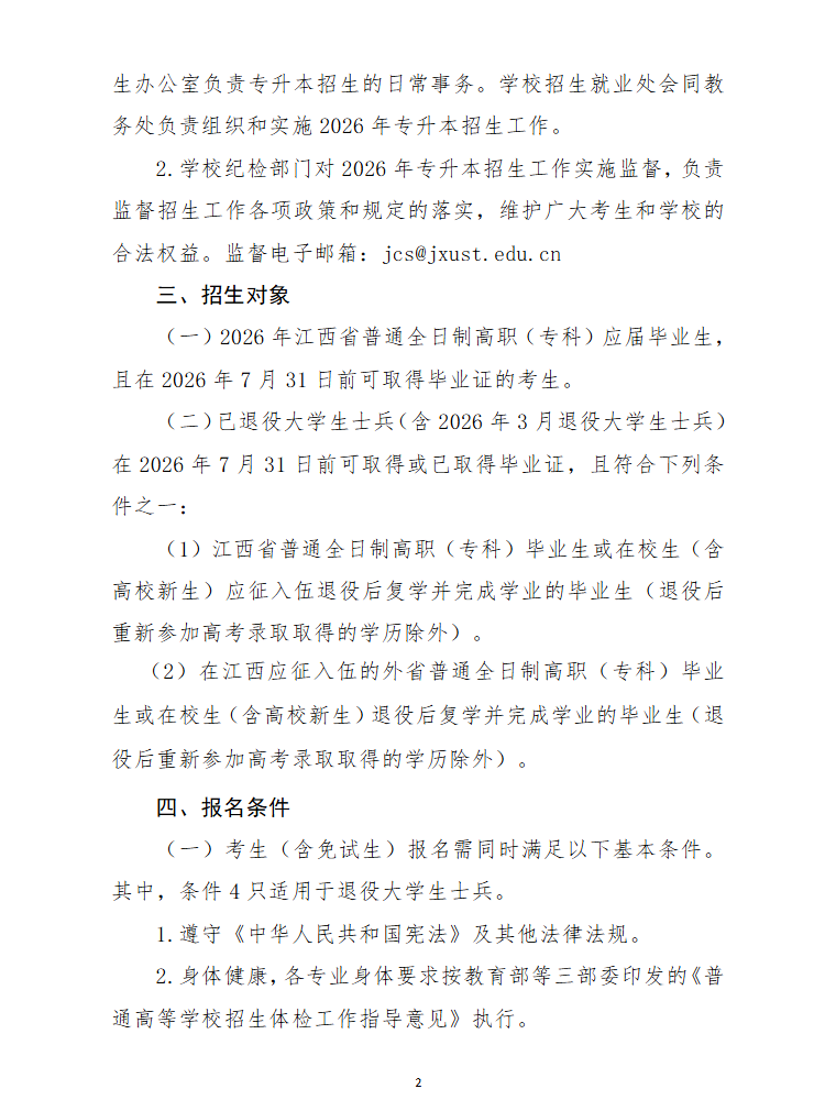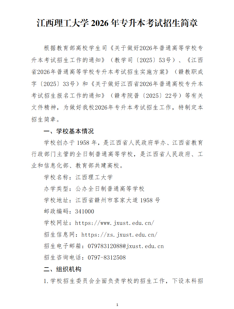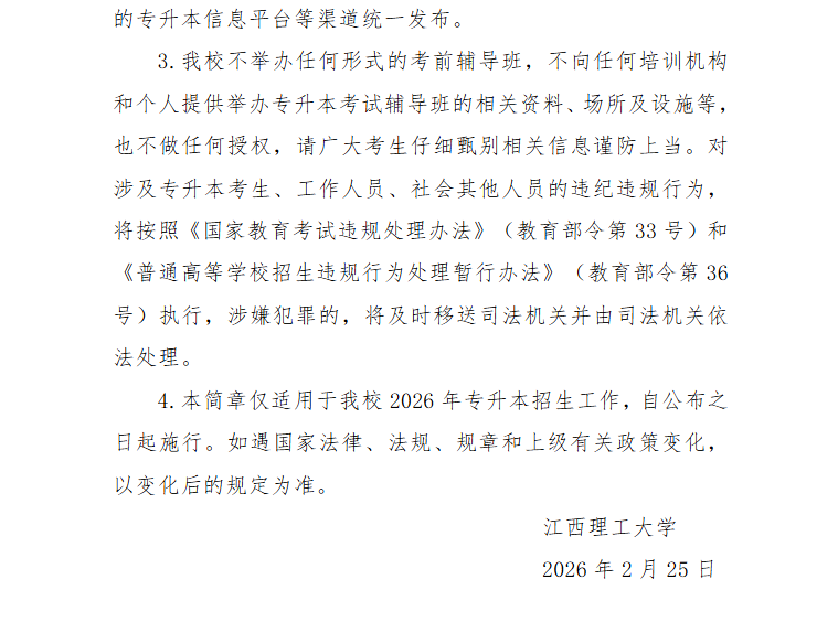 本文是江西理工大学2026年专升本考试招生简章,由好老师升学帮收集整理,仅供参考。