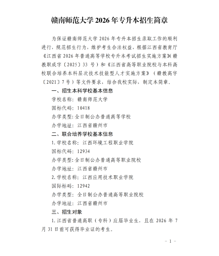 本文是赣南师范大学2026年专升本招生简章,由好老师升学帮收集整理,仅供参考。