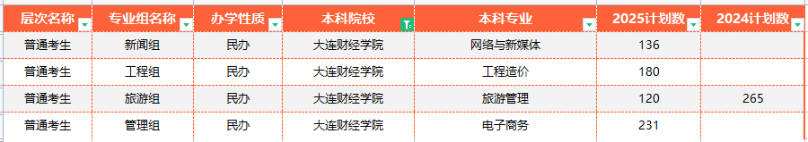 2024-2025年大连财经学院专升本招生计划增减情况