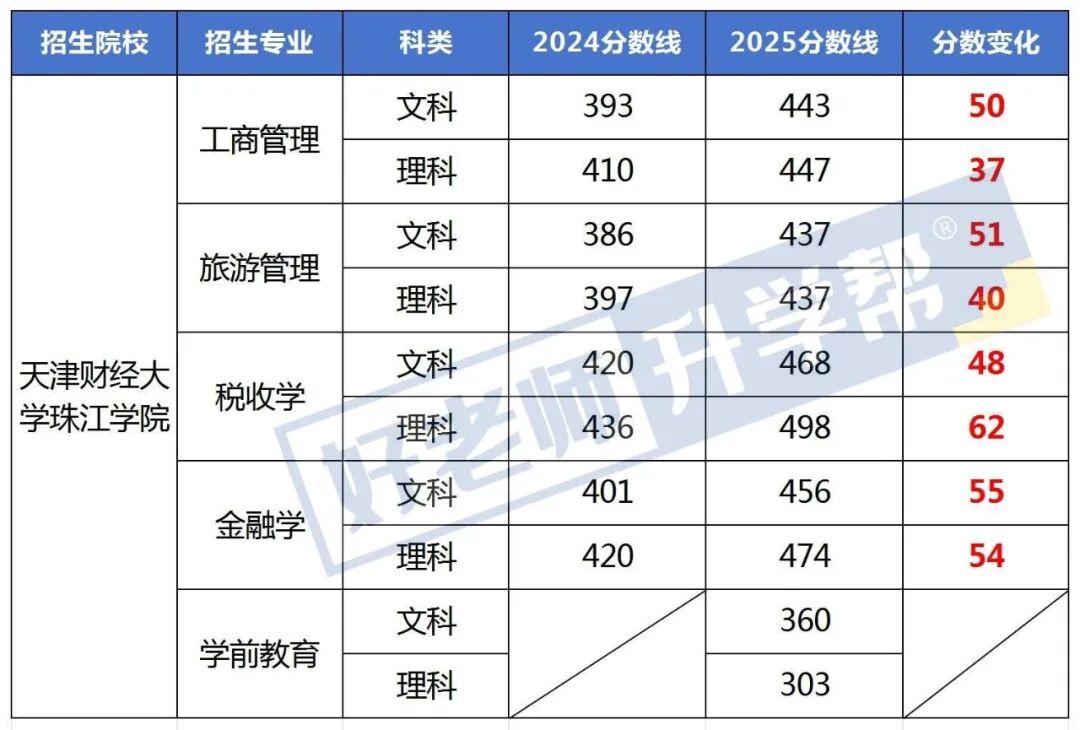 从专业课录取分数上看,2025年天津财经大学珠江学院录取分数线较往年有所提升,新增的学前教育专业分数线和其他专业对比较低,要报考这个院校的学生可以参考一下。