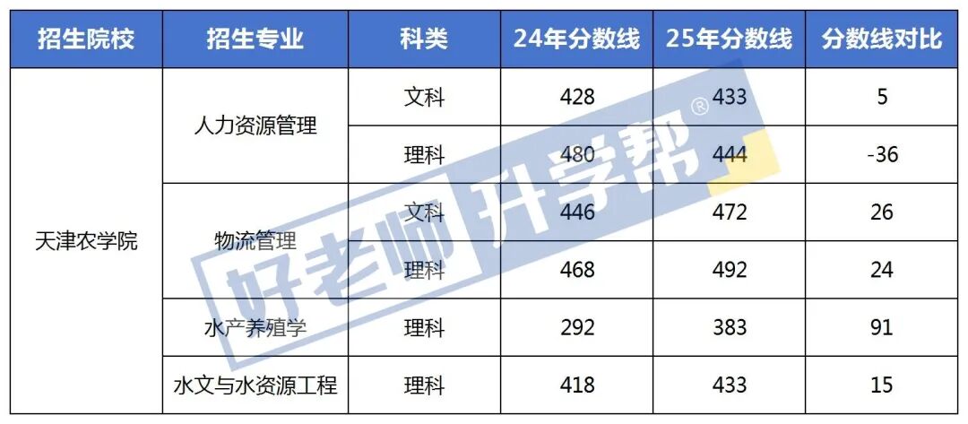 从表中可以看出,除了招收理科的人力资源管理专业外,天津农学院的分数线今年有了小幅度的提升。