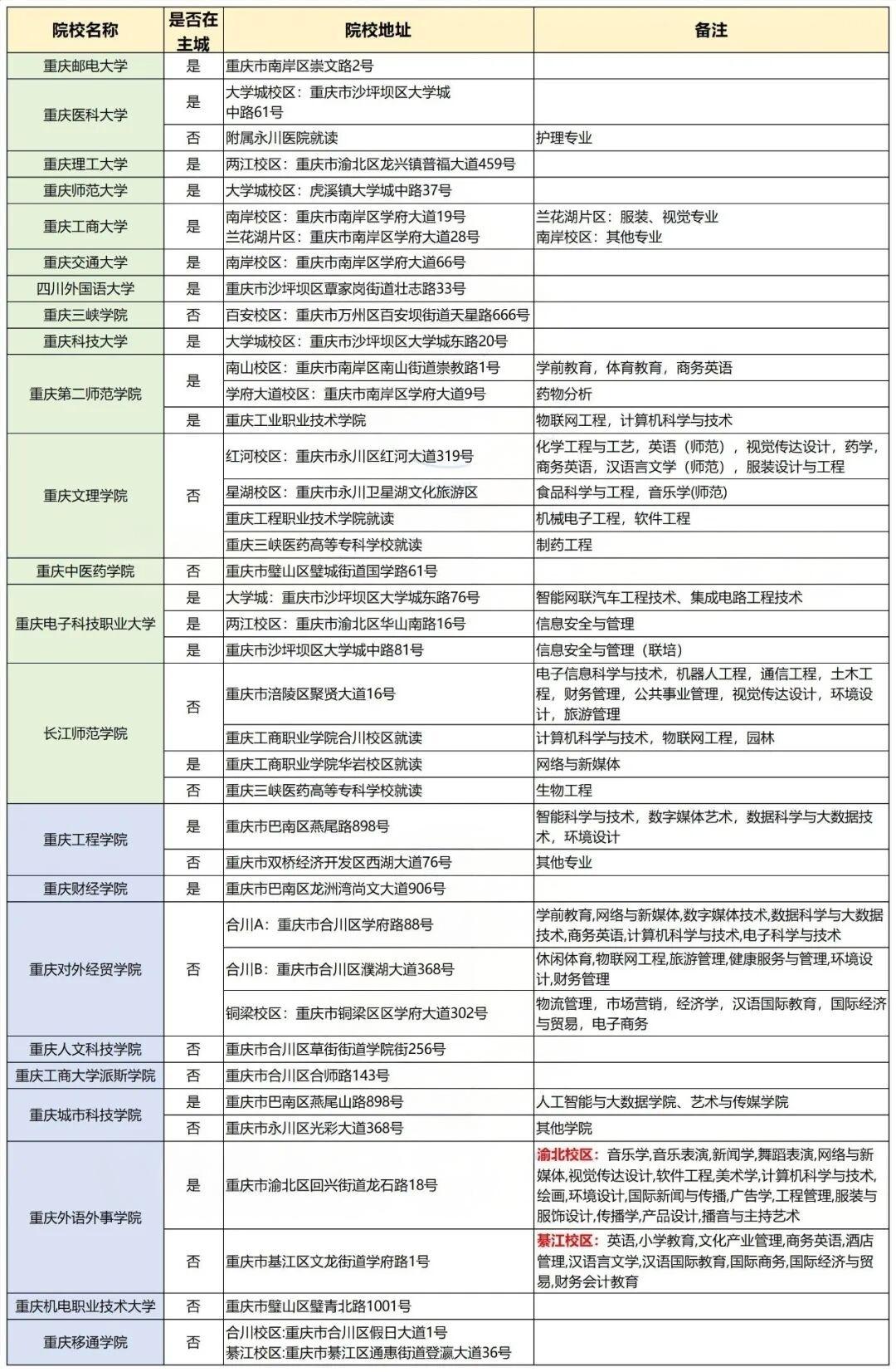 建议大家选择交通方便或者离家近的院校,这样上岸后的本科生活幸福指数会更高~接下来小编会帮大家盘点一下我们重庆专升本23所招生院校都在哪里?需要避坑的同学感觉提前收藏起来!明年填志愿的时候总会用上!