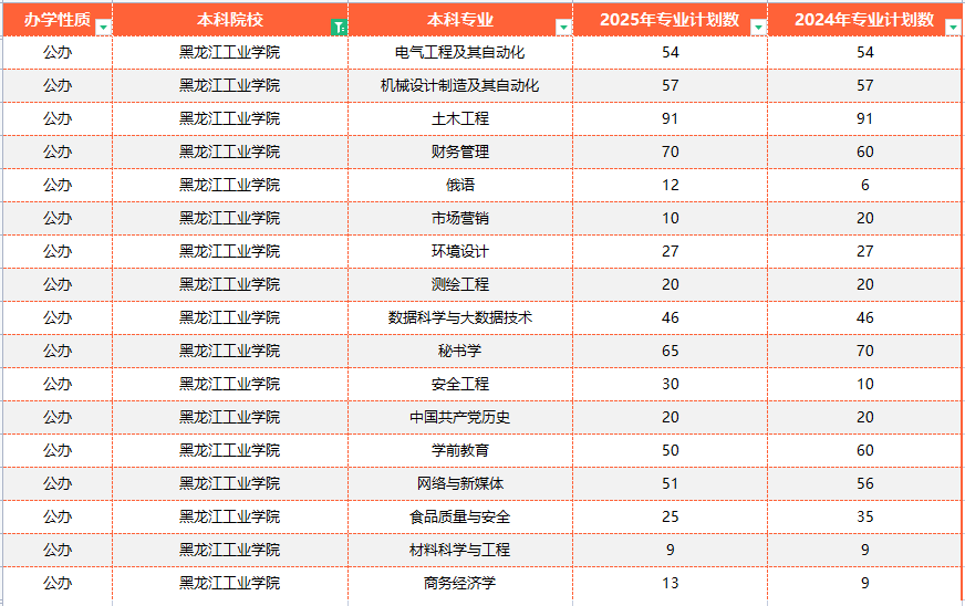 2024-2025年黑龙江工业学院专升本招生计划增减情况