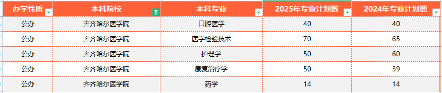 2024-2025年齐齐哈尔医学院专升本招生计划增减情况