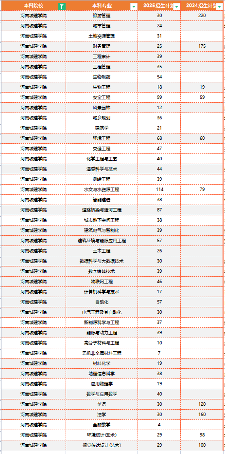 2024-2025年河南城建学院专升本招生计划增减情况