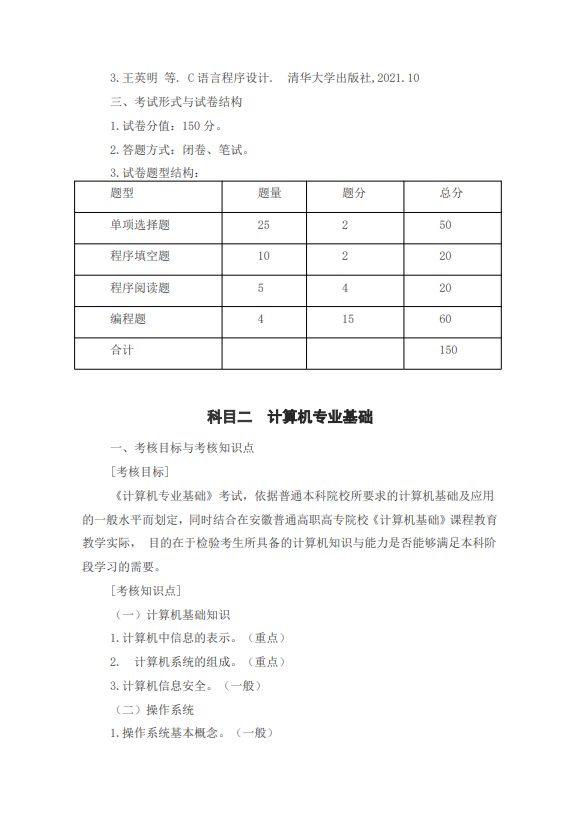 2026年马鞍山学院计算机科学与技术专业专升本专业课考试大纲