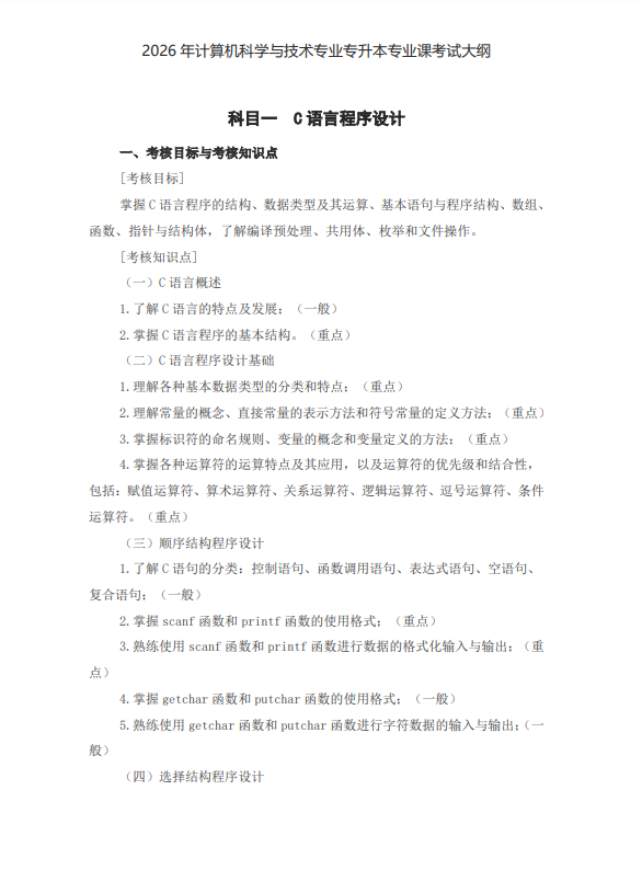 2026年马鞍山学院计算机科学与技术专业专升本专业课考试大纲已经公布了,好老师升学帮整理如下信息供大家参考!