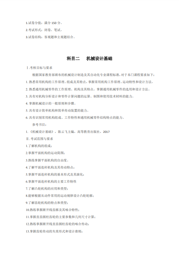 2026年马鞍山学院机械设计制造及其自动化专业专升本专业课考试大纲