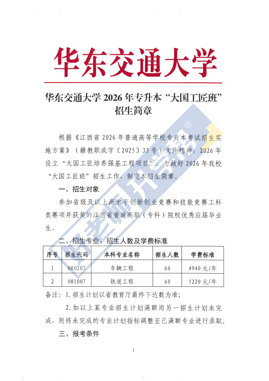 导读:本文是招120人!华东交通大学2026年专升本“大国工匠班”招生简章,由好老师升学帮收集整理,仅供参考。