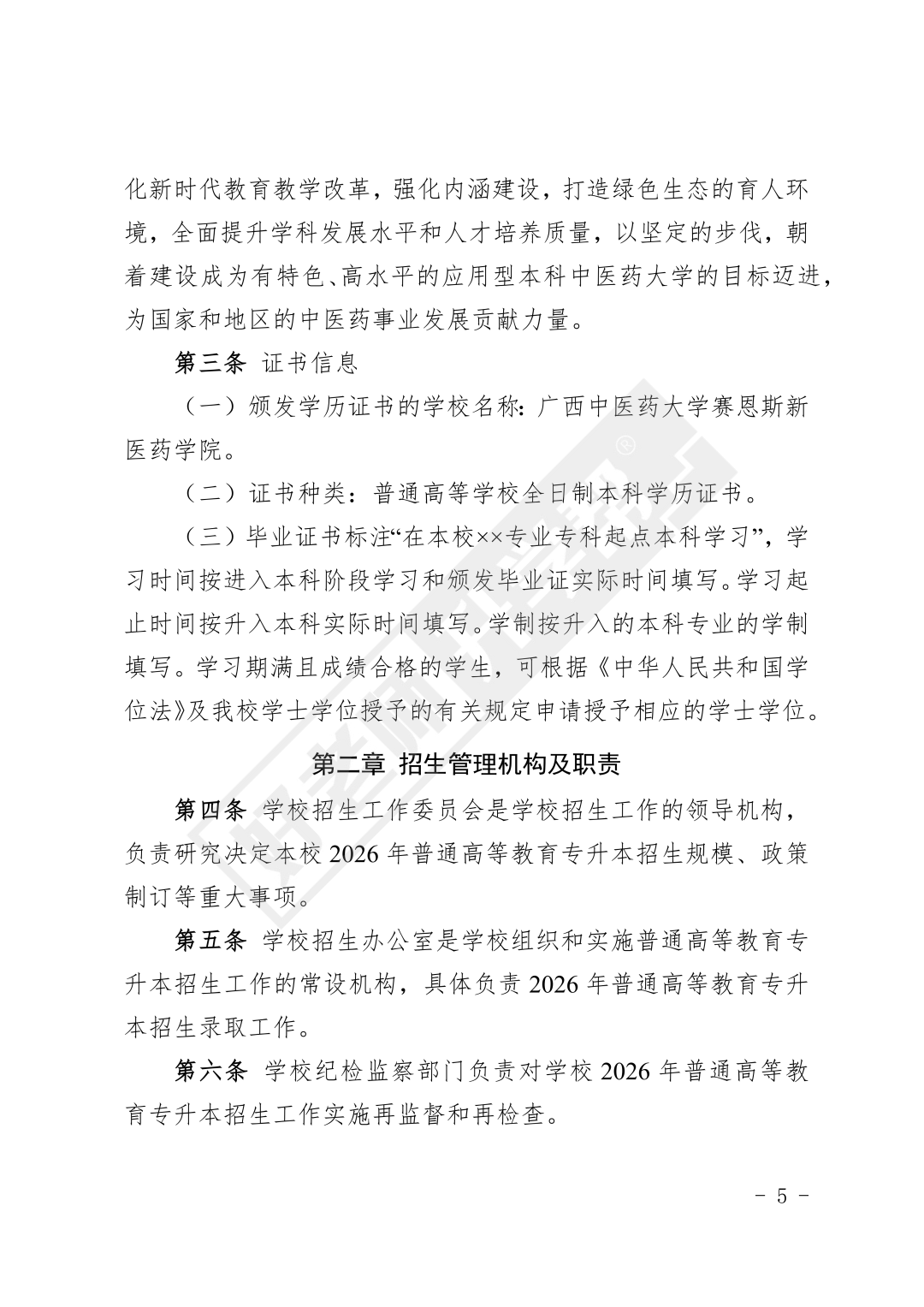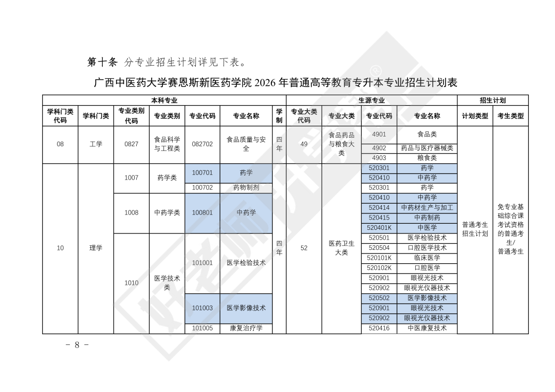 广西中医药大学赛恩斯新医药学院2026年普通高等教育专升本考试招生简章