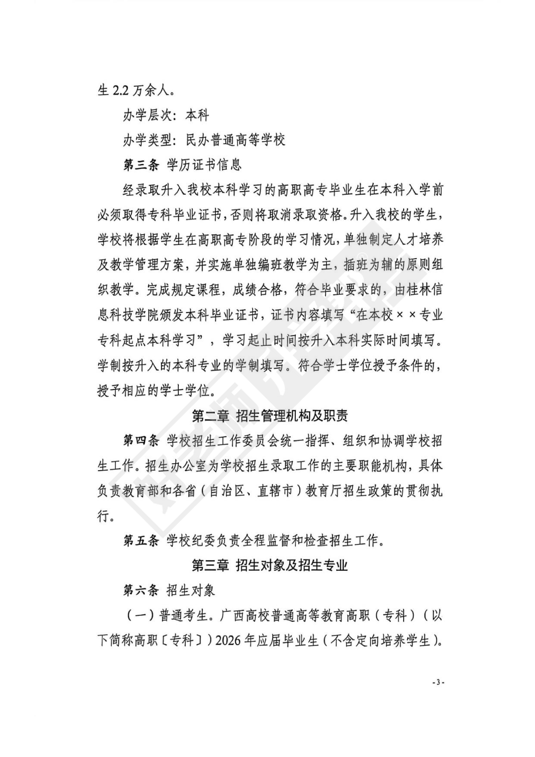 桂林信息科技学院2026年普通高等教育专升本考试招生简章