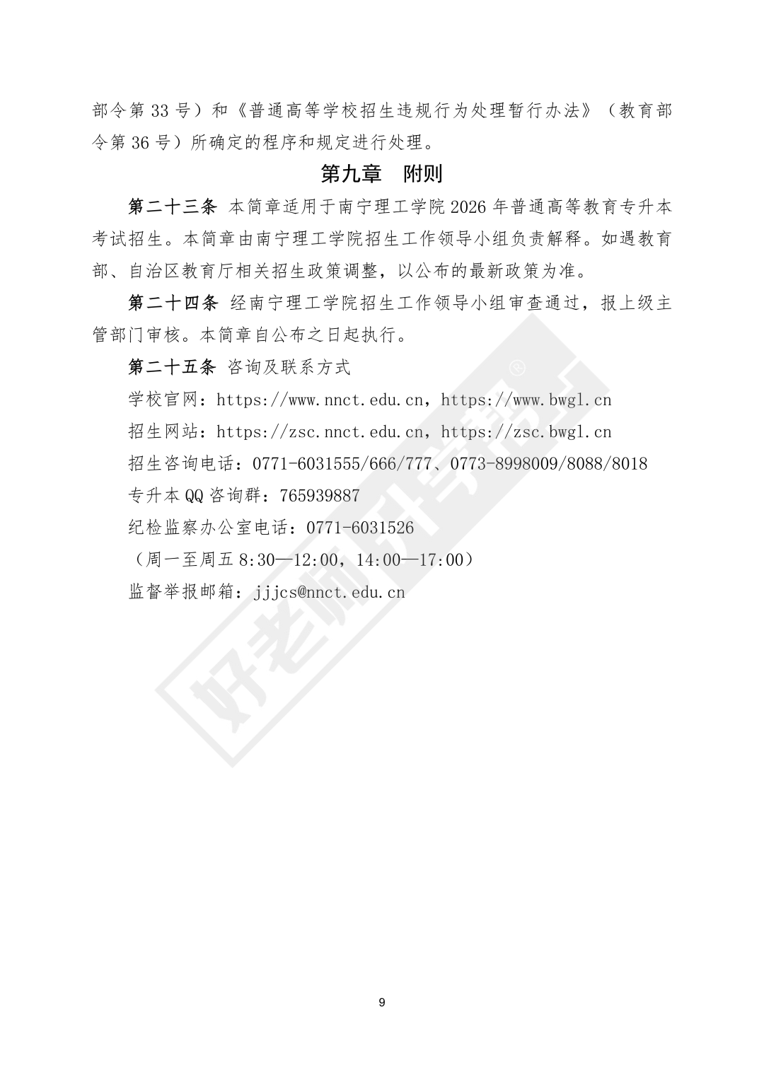 导读:为了进一步规范南宁理工学院专升本招生工作,切实维护学校和考生合法权益,依照<<自治区教育厅关于做好我区2026年普通高等教育专升本考试招生工作的通知>>(桂教职成(2025)47号)文件精神,结合学校实际,制定本章程。
