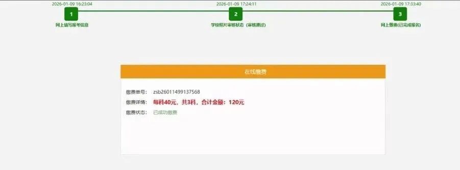 大家在报名时要注意,填报信息后上传照片,照片审核通过才可缴费(系统会以短信通知你照片审核是否通过),缴费完成才算报名成功(如下图)