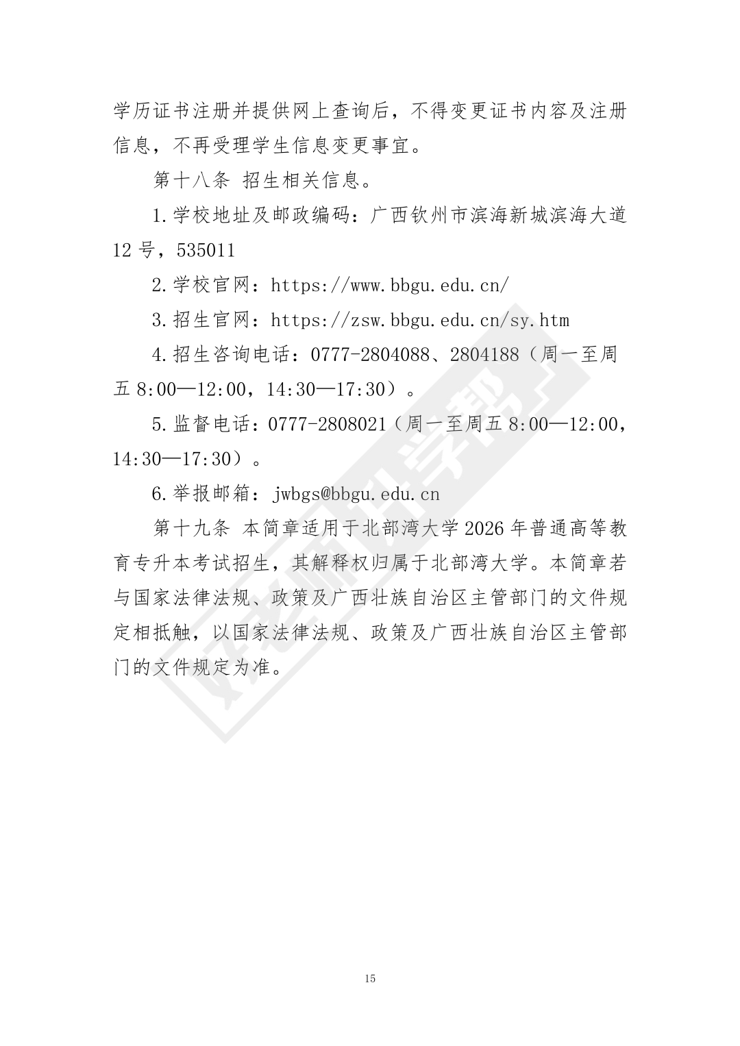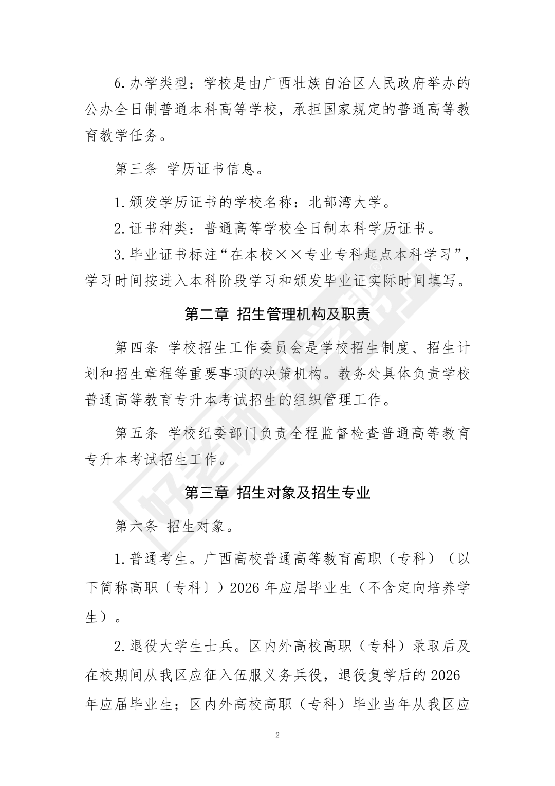 北部湾大学2026年普通高等教育专升本考试招生简章