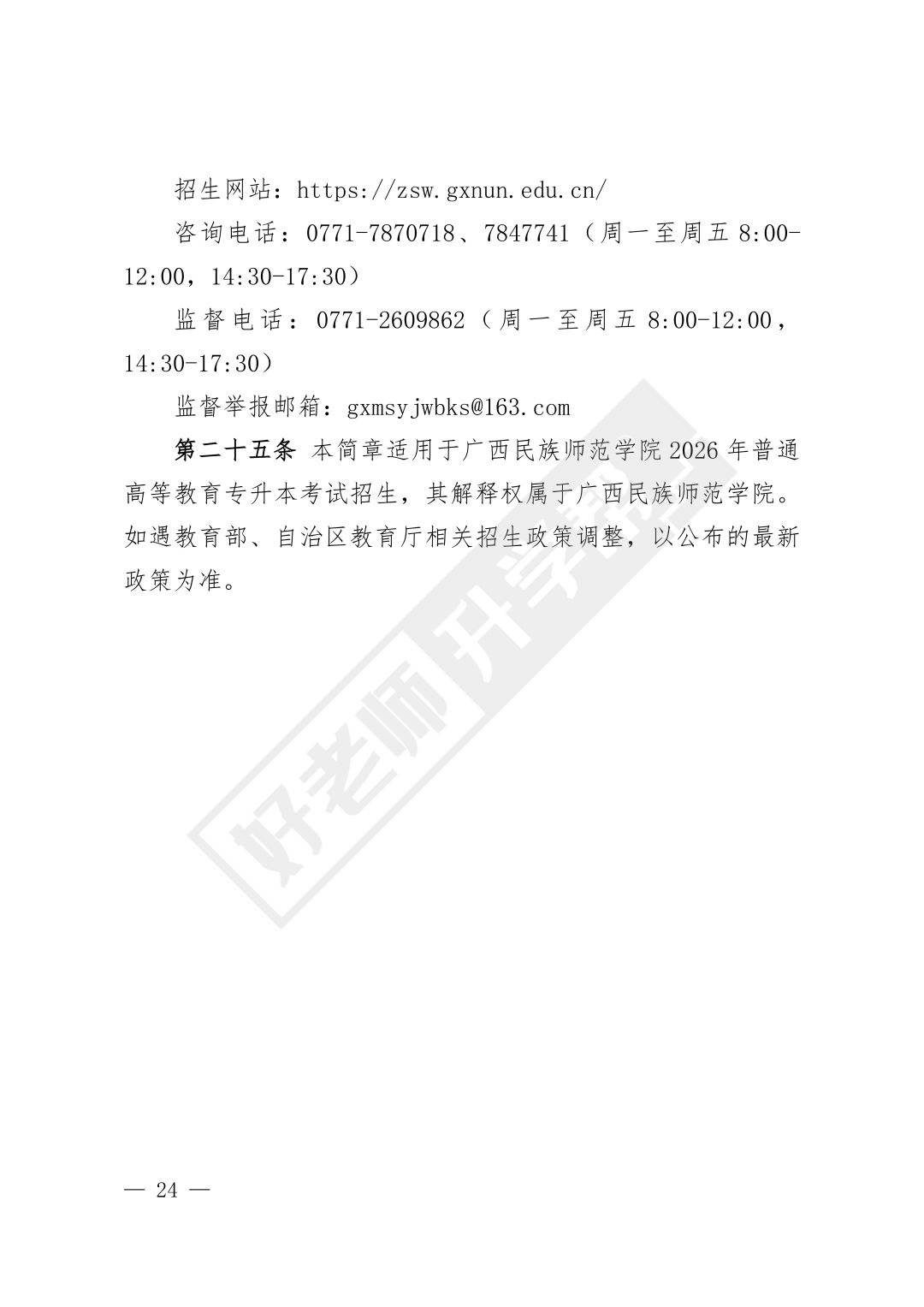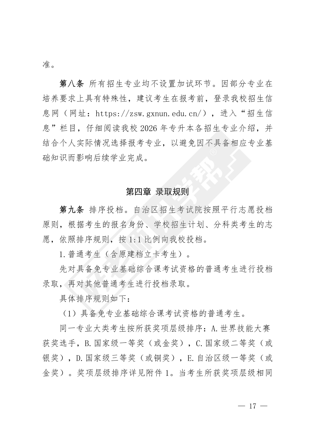 导读:为贯彻落实<<自治区教育厅关于印发广西普通高等教育专升本考试招生工作实施办法的通知>>(桂教规范(2023)9号)和<<自治区教育厅关于做好我区2026年普通高等教育专升本考试招生工作的通知>>(桂教职成(2025)47号)文件精神,结合学校实际情况,制定本招生简章。