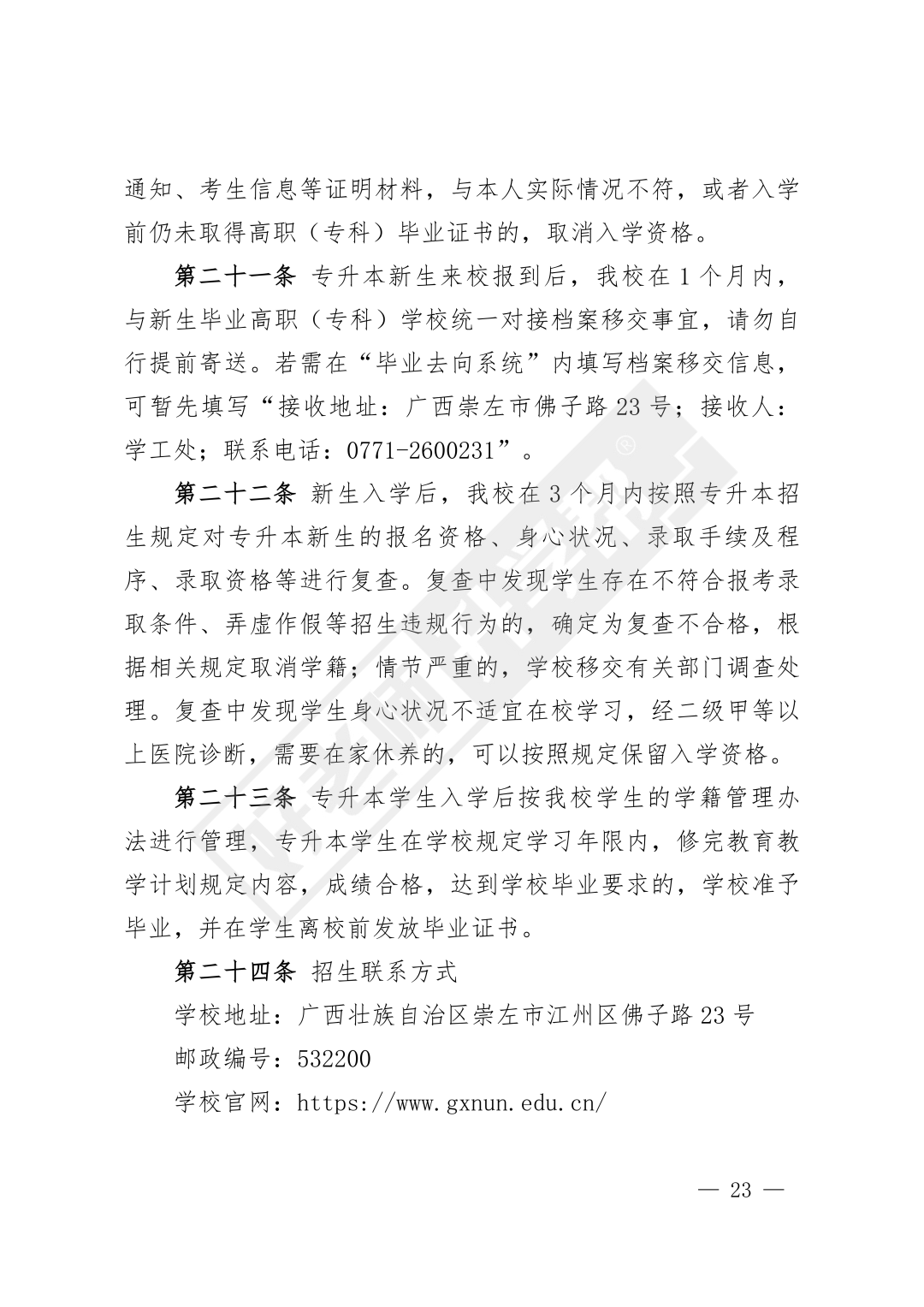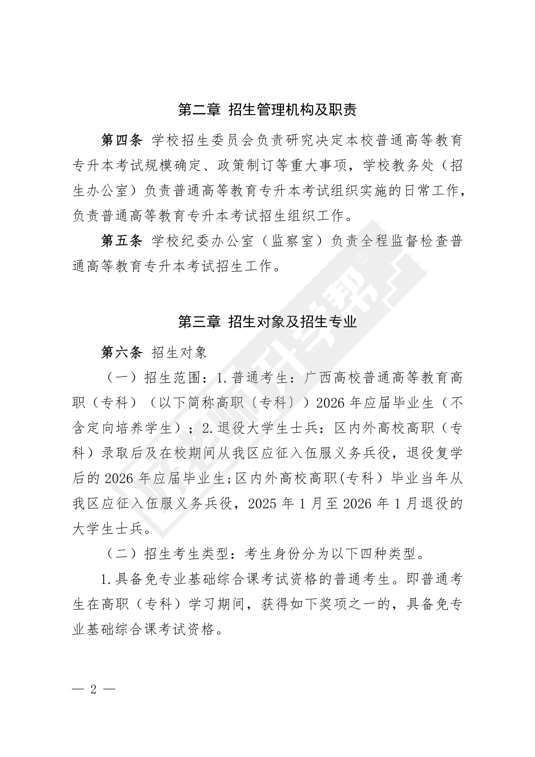 为贯彻落实<<自治区教育厅关于印发广西普通高等教育专升本考试招生工作实施办法的通知>>(桂教规范(2023)9号)和<<自治区教育厅关于做好我区2026年普通高等教育专升本考试招生工作的通知>>(桂教职成(2025)47号)文件精神,结合学校实际情况,制定本招生简章。