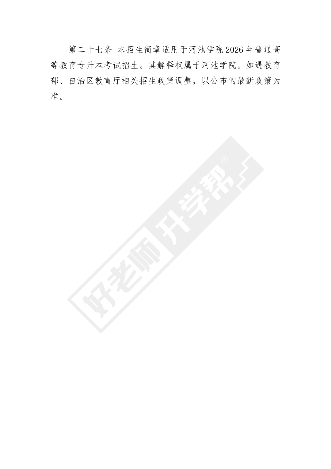 河池学院2026年普通高等教育专升本考试招生简章