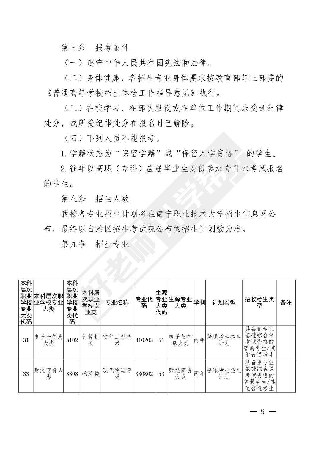 南宁职业技术大学2026年普通高等教育专升本考试招生简章