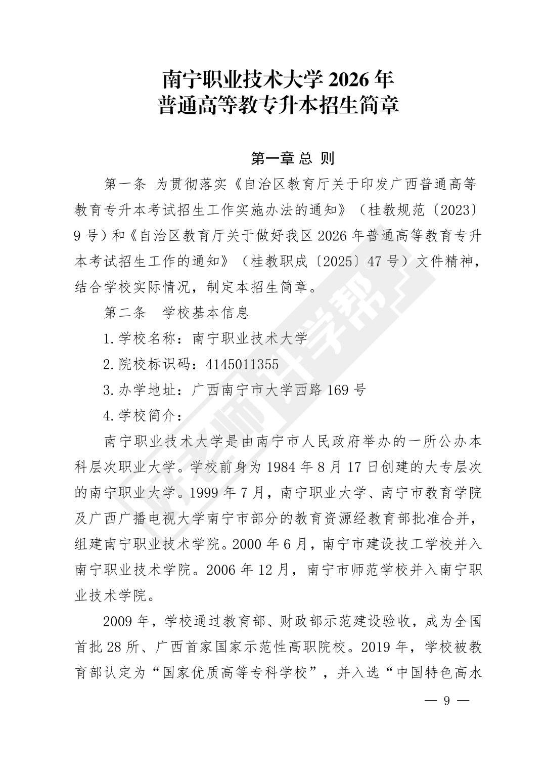 为贯彻落实<<自治区教育厅关于印发广西普通高等教育专升本考试招生工作实施办法的通知>>(桂教规范(2023)9号)和<<自治区教育厅关于做好我区2026年普通高等教育专升本考试招生工作的通知>>(桂教职成(2025)47号)文件精神,结合学校实际情况,制定本招生简章。