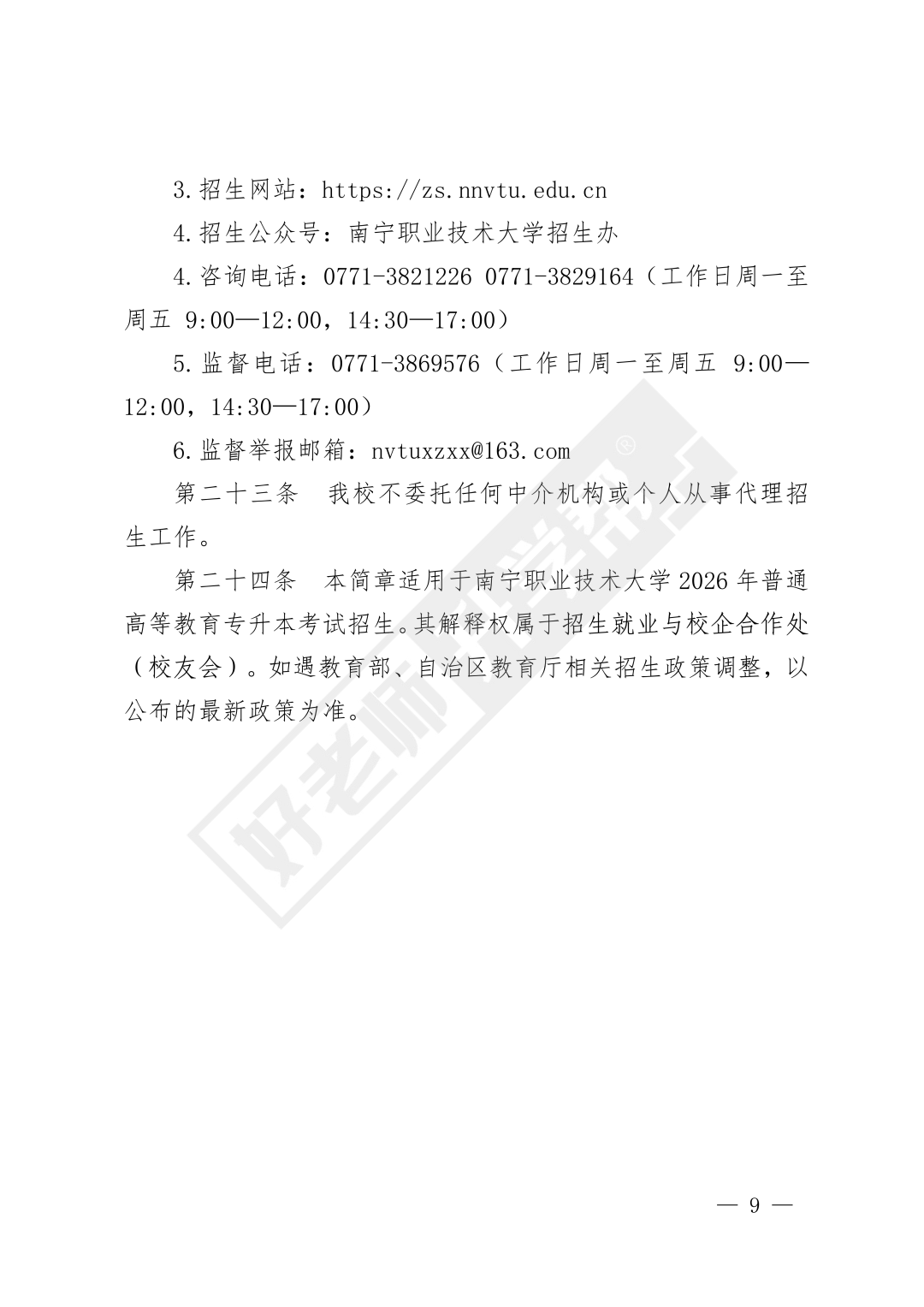 导读:本文是南宁职业技术大学2026年普通高等教育专升本考试招生简章,由好老师升学帮整理给大家参考!