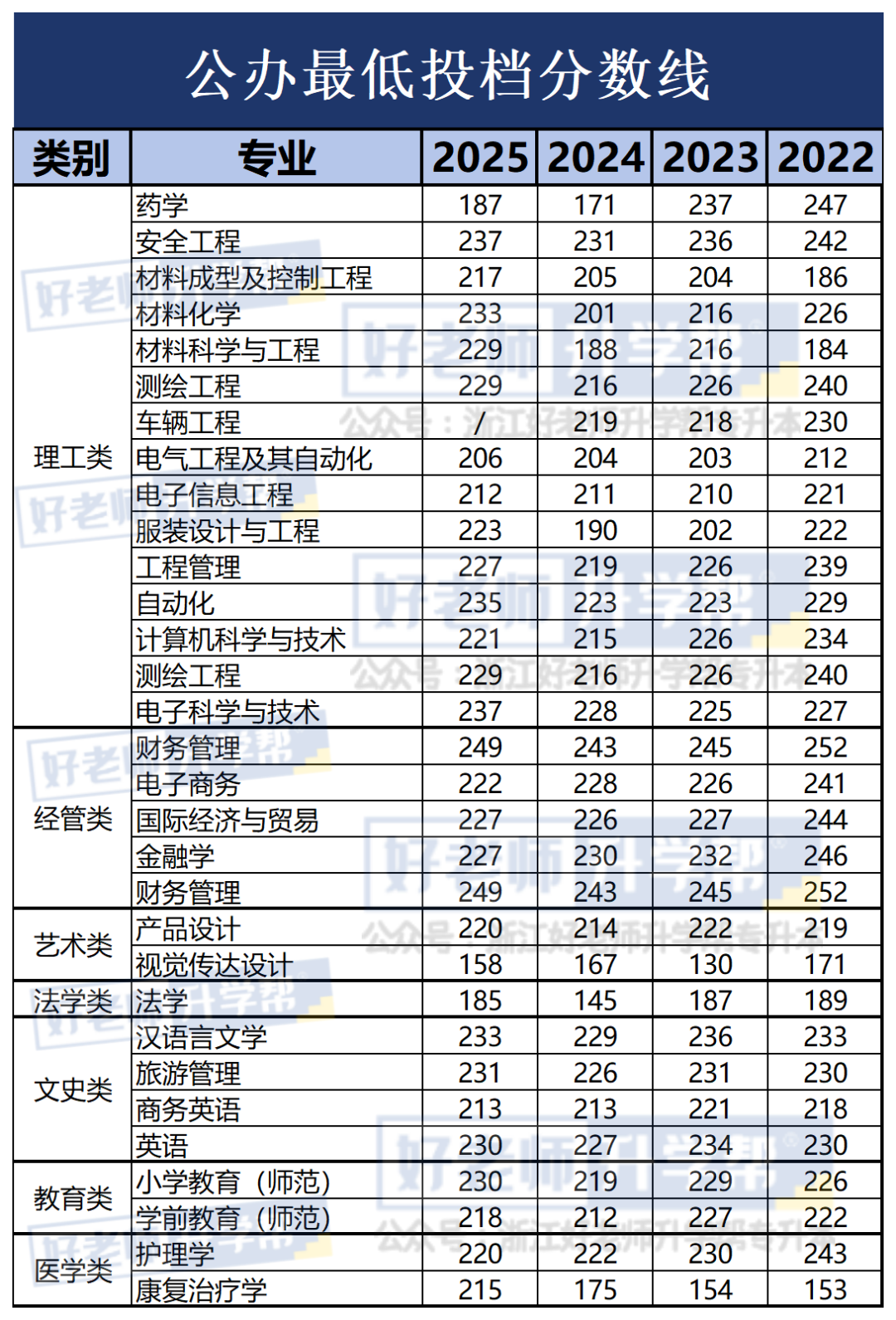 导读:学姐整理了2025浙江所有公办院校专升本招生情况,同时为大家整理了公办院校近四年来(2022-2025)的最低录取线的分数变化