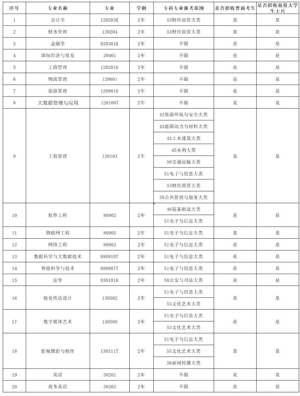 2.培养。专升本学生(含退役大学生士兵)为高等学校普通全日制学生,学制2年,相关档案需转入我校,不得采取非全日制学习形式就读,入学后不得转专业和转学。专升本学生原则上单独编班教学,确实无法单独编班的可安排插班教学。