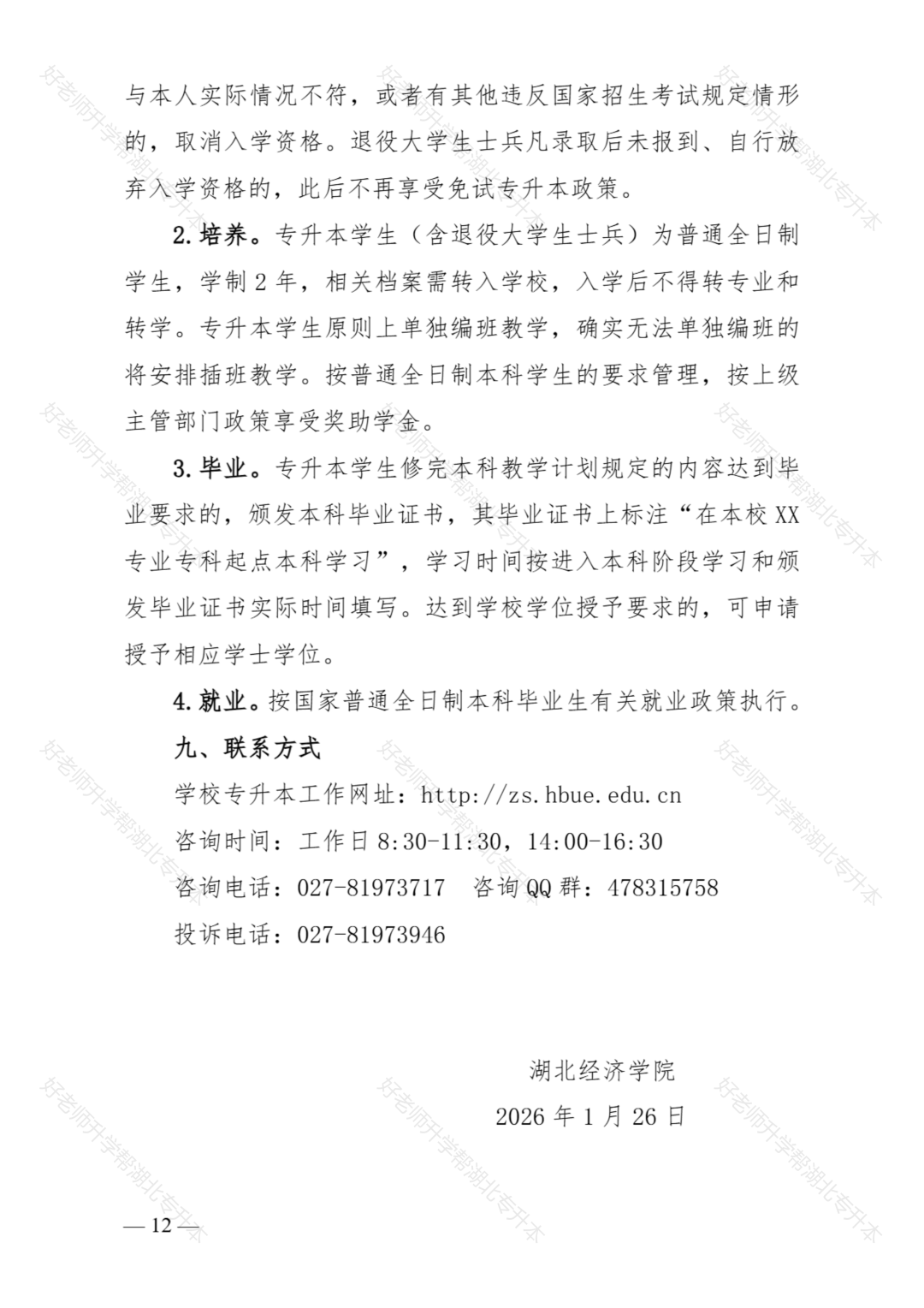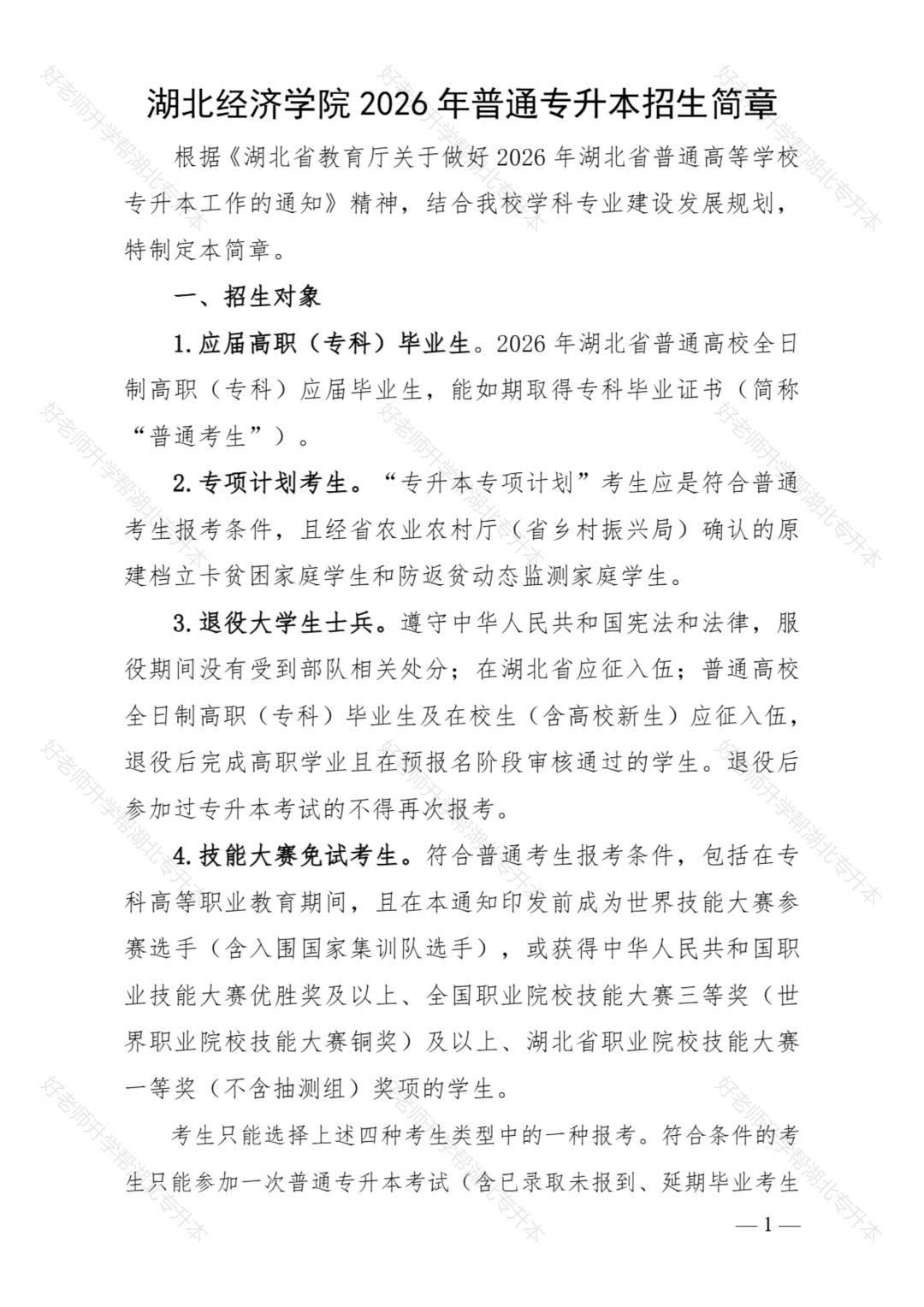 导读:根据《湖北省教育厅关于做好2026年湖北省普通高等学校专升本工作的通知》精神,结合我校学科专业建设发展规划,特制定本简章。