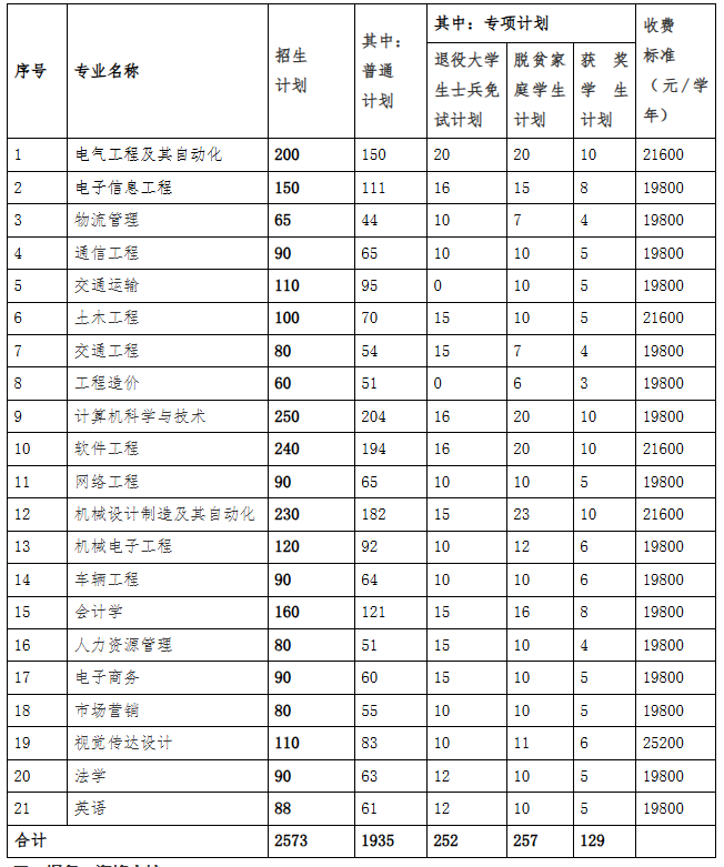 二、招生专业、招生计划及收费标准