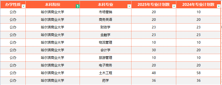 2024-2025年哈尔滨商业大学专升本招生计划增减情况